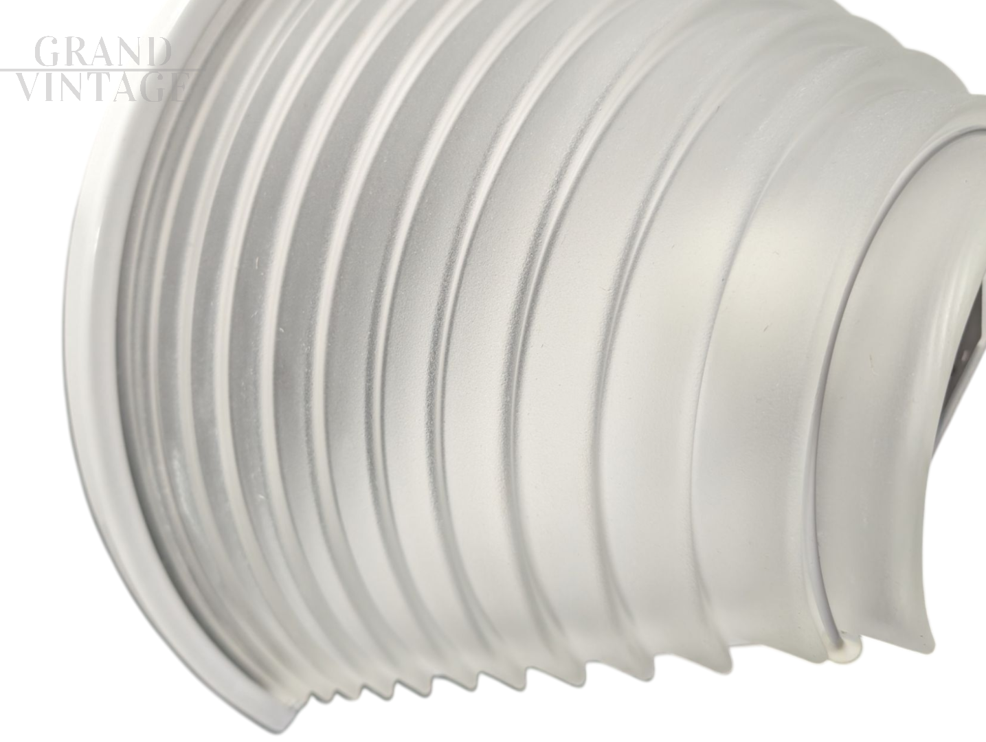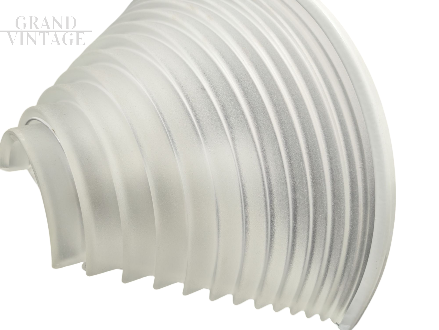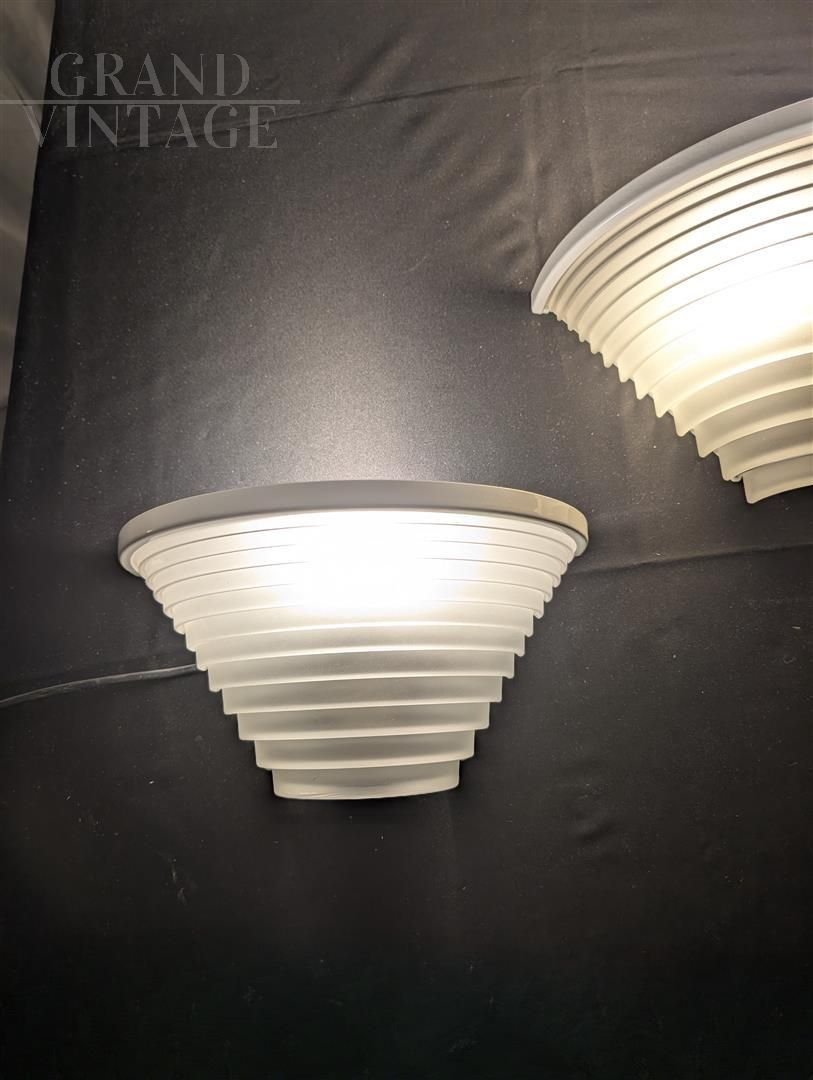 Coppia di applique Egisto di Angelo Mangiarotti per Artemide in vetro satinato dalla tipica forma "a gradini", con due dimensioni diverse, Italia anni '80. Le condizioni sono ottime, non presentano alcun segno di usura.