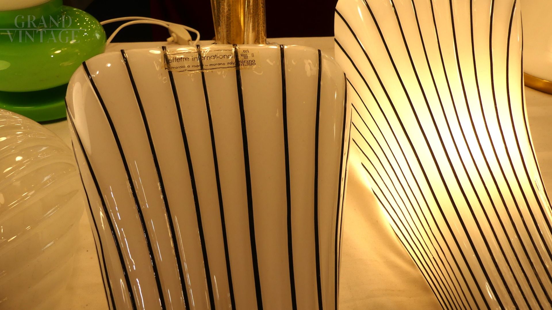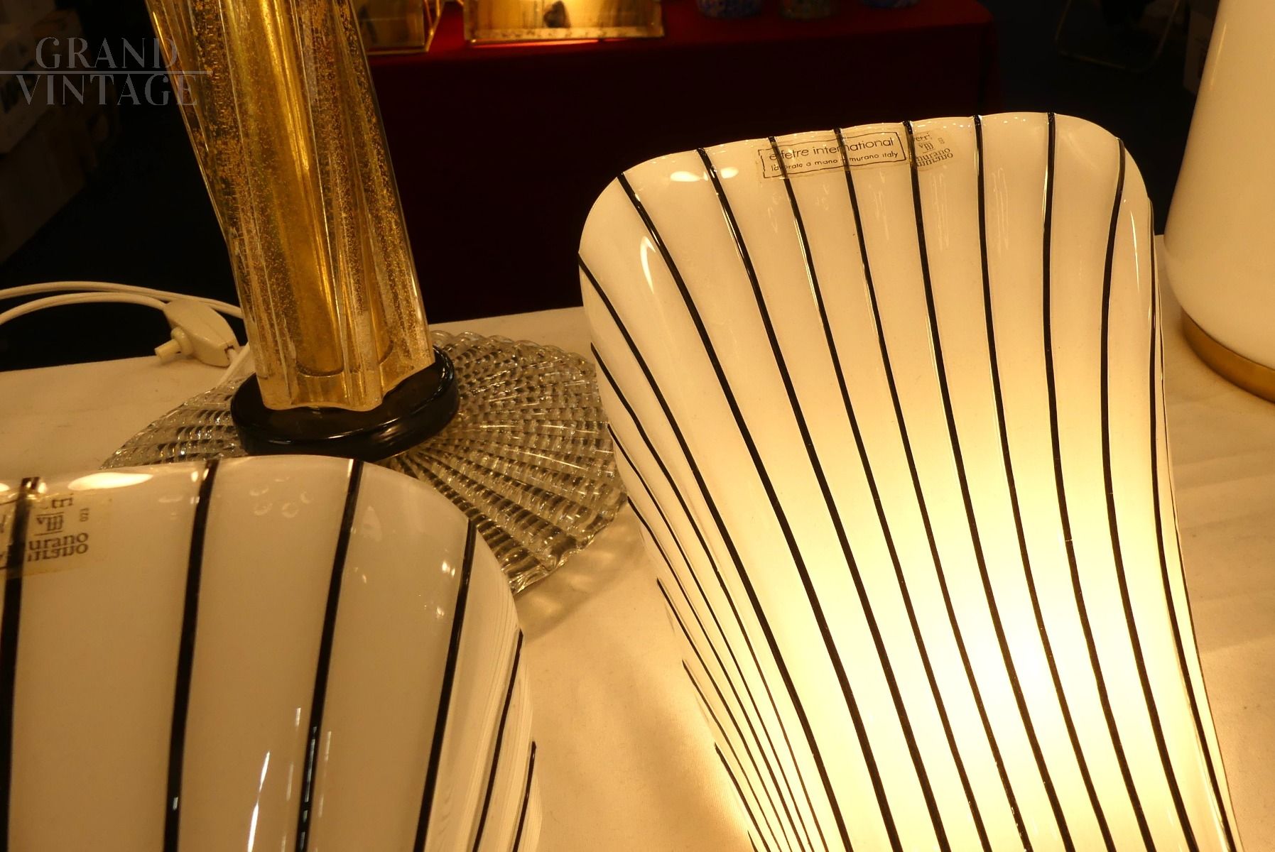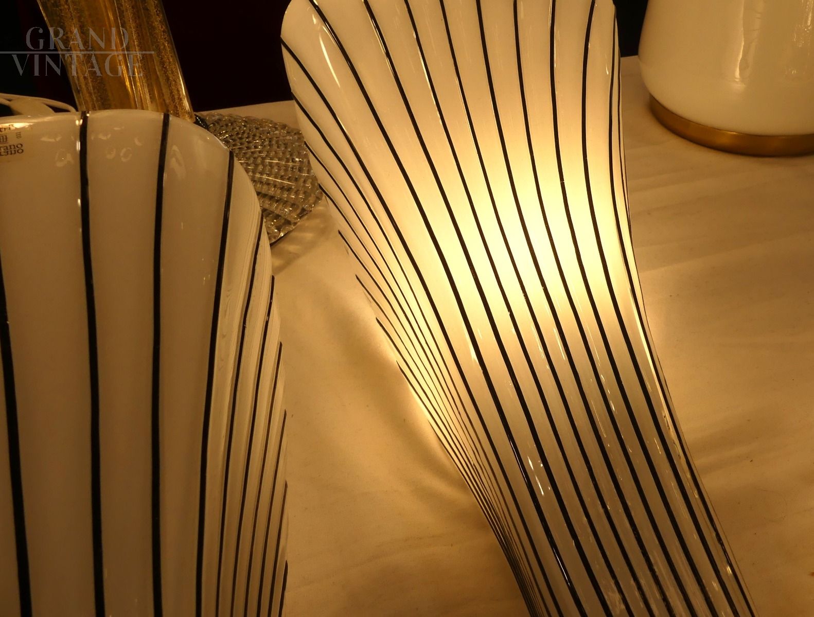 Coppia di applique in vetro di Murano Effetre bianche con rigatura nera