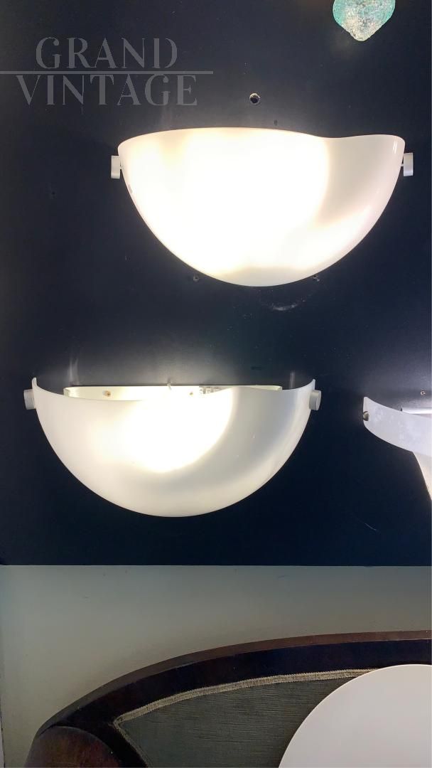 Coppia di applique Mezzamarubia di Vistosi in vetro di Murano bianco