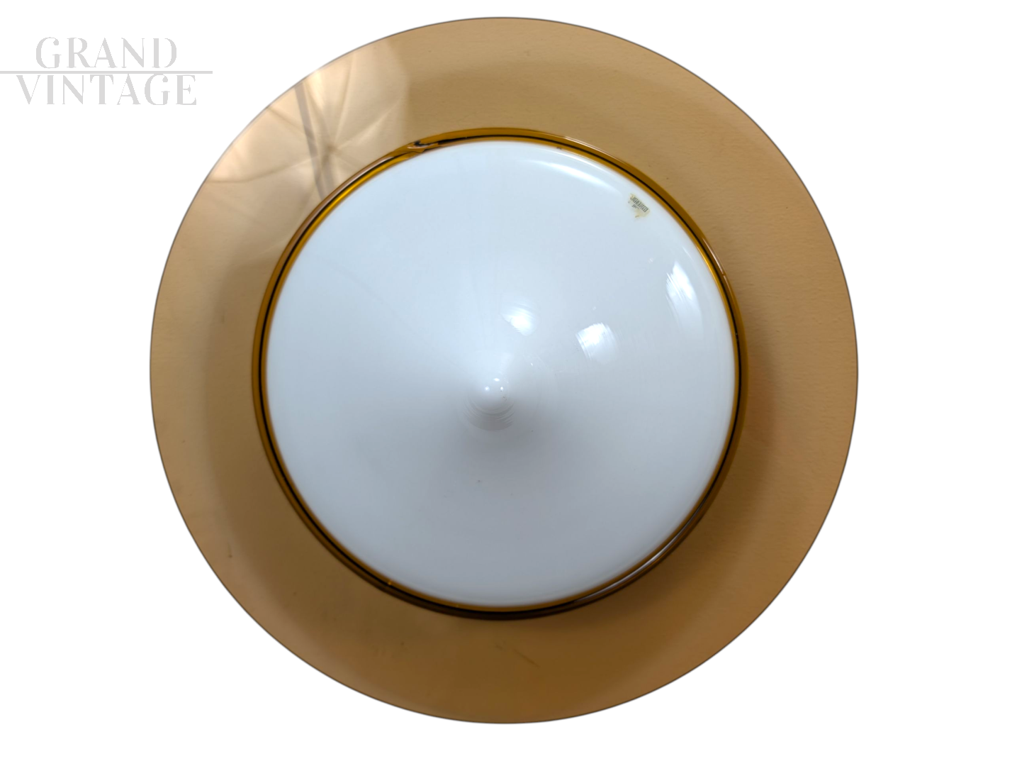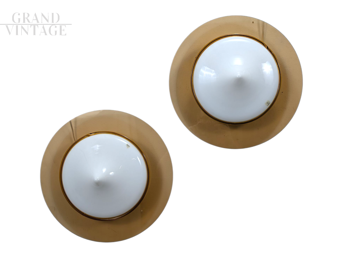 Coppia di applique rotonde in vetro di Murano ambrato, anni '70