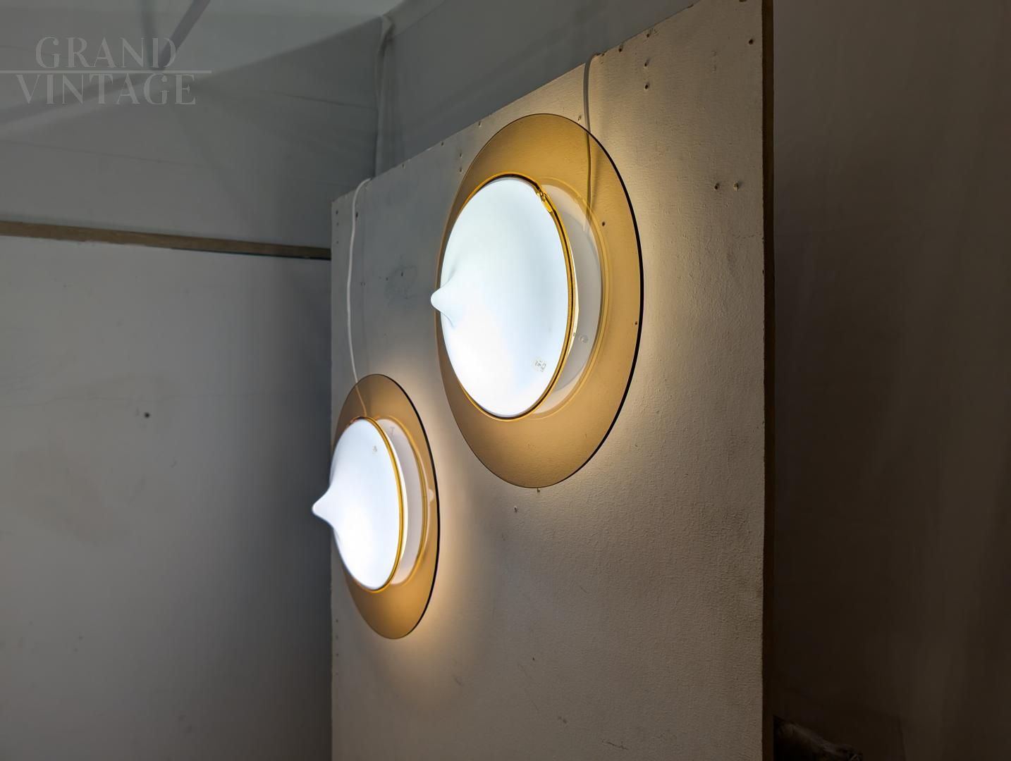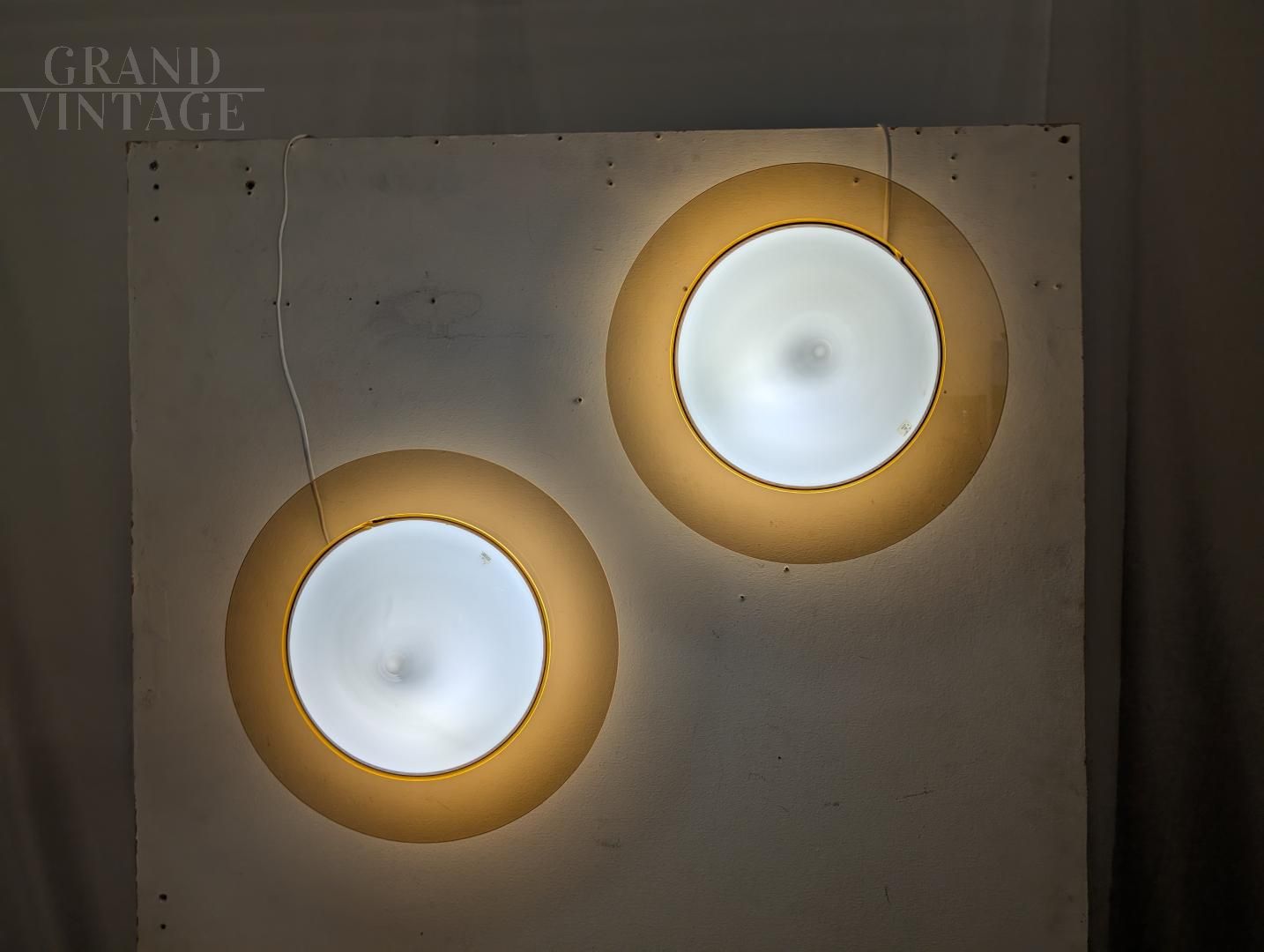 Elegante coppia di applique originali dell'era spaziale, risalenti agli anni '60/'70, perfette per aggiungere un tocco futuristico e retrò a qualsiasi ambiente. Ideali per interni in stile vintage, moderno o eclettico, queste applique uniscono funzionalità e fascino decorativo, illuminando con una luce soffusa e avvolgente. Oggetti da collezione rari e ricercati, perfetti per chi desidera portare un pezzo autentico del passato nel presente. Condizioni perfette, testati e funzionanti.