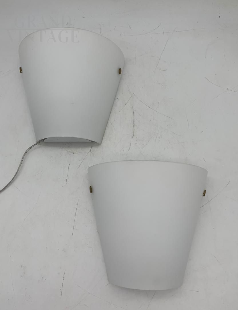 Coppia di applique vintage in vetro bianco lattimo, anni '60