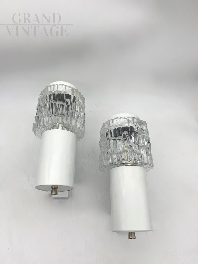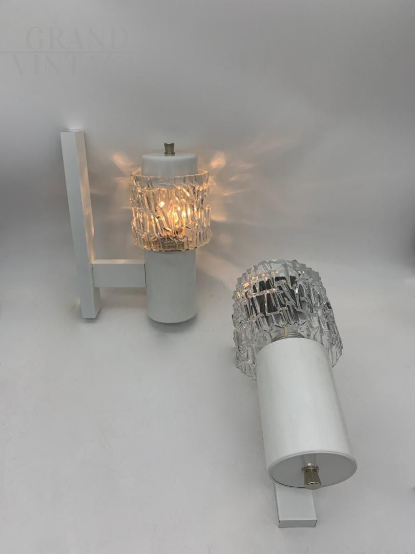 Coppia di applique vintage in vetro e metallo laccato bianco