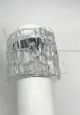 Coppia di lampade appliques da parete vintage in metallo bianco con paralume in vetro effetto rostrato lavorato a mano su stampo. Molto particolari e dal design iconico, il loro colore è quello originale dell'epoca. Le appliques sono in ottime condizioni, con vetri intatti e impianto elettrico rifatto a nuovo, presenta lievi naturali segni del tempo sulla struttura. Ciascuna applique ha 1 attacco per lampadina di tipo E27. Le parti in vetro possono essere rimosse per agevolarne un trasporto sicuro. Su richiesta si può preparare un impianto elettrico adatto per l'America. Disponibile un'altra coppia uguale ma con laccatura color giallo.