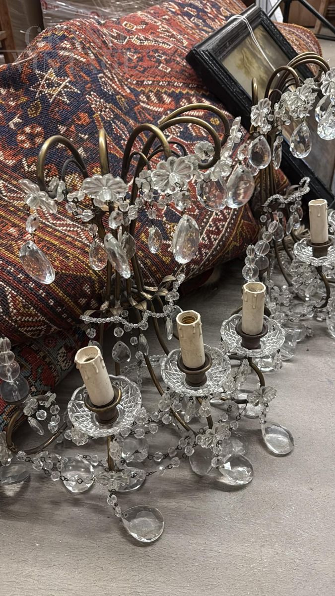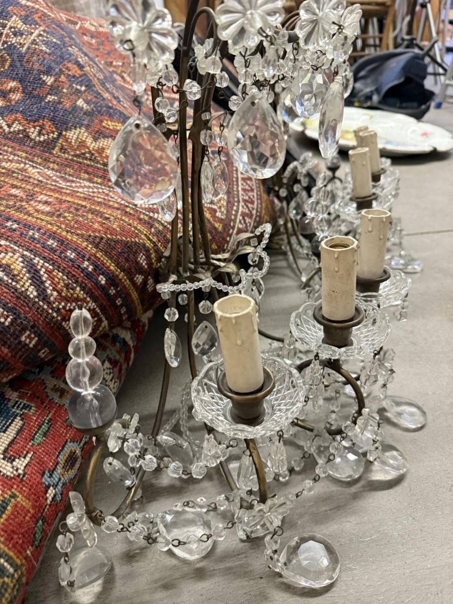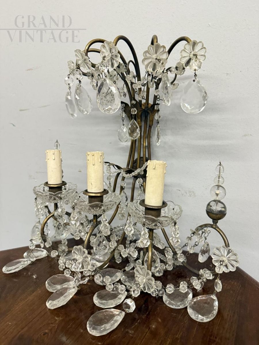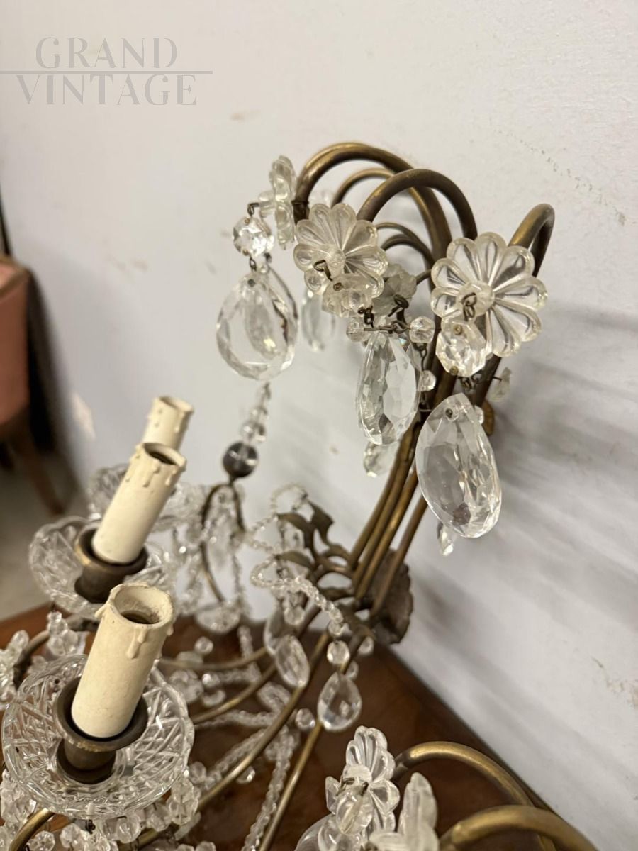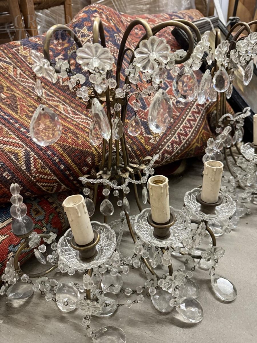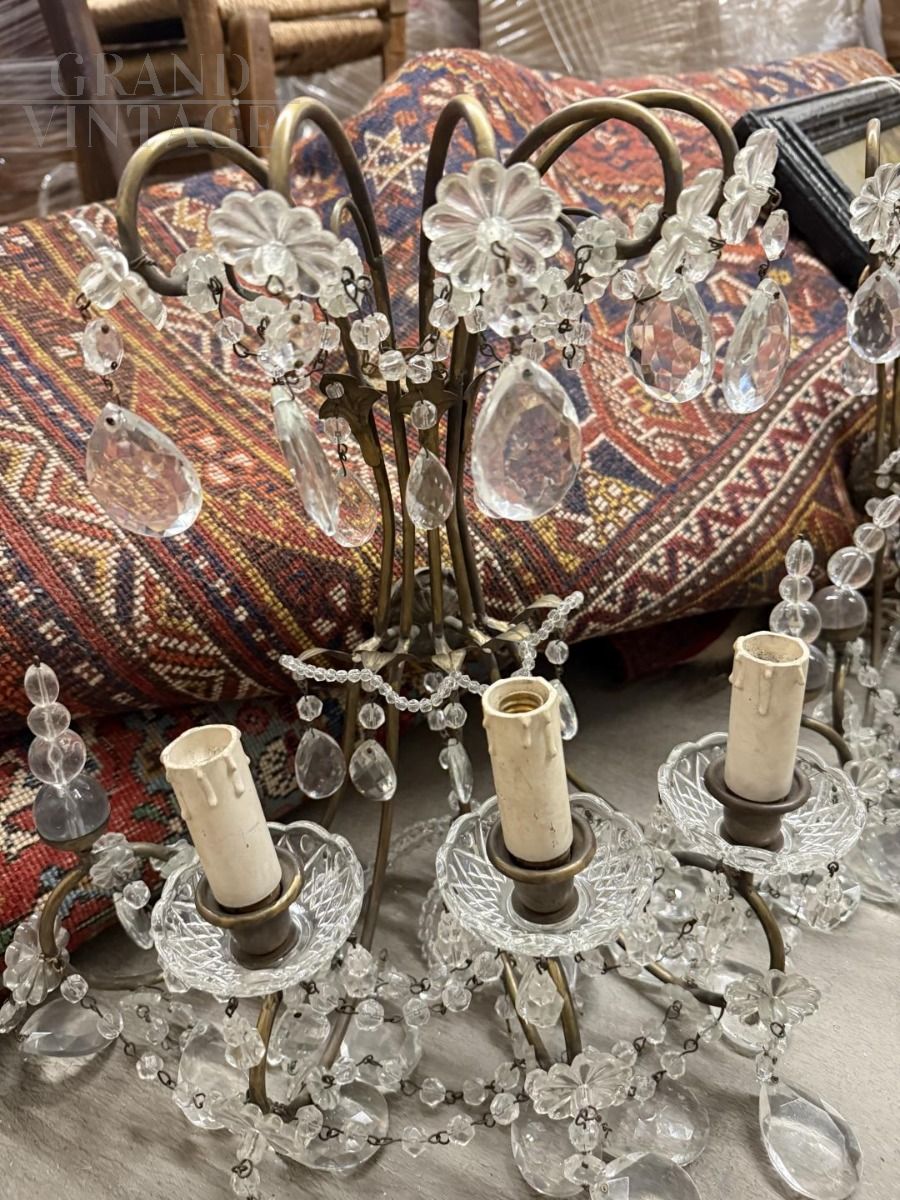 Coppia di appliques dei primi del '900 con gocce di cristallo