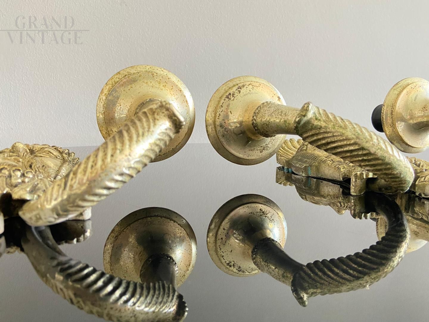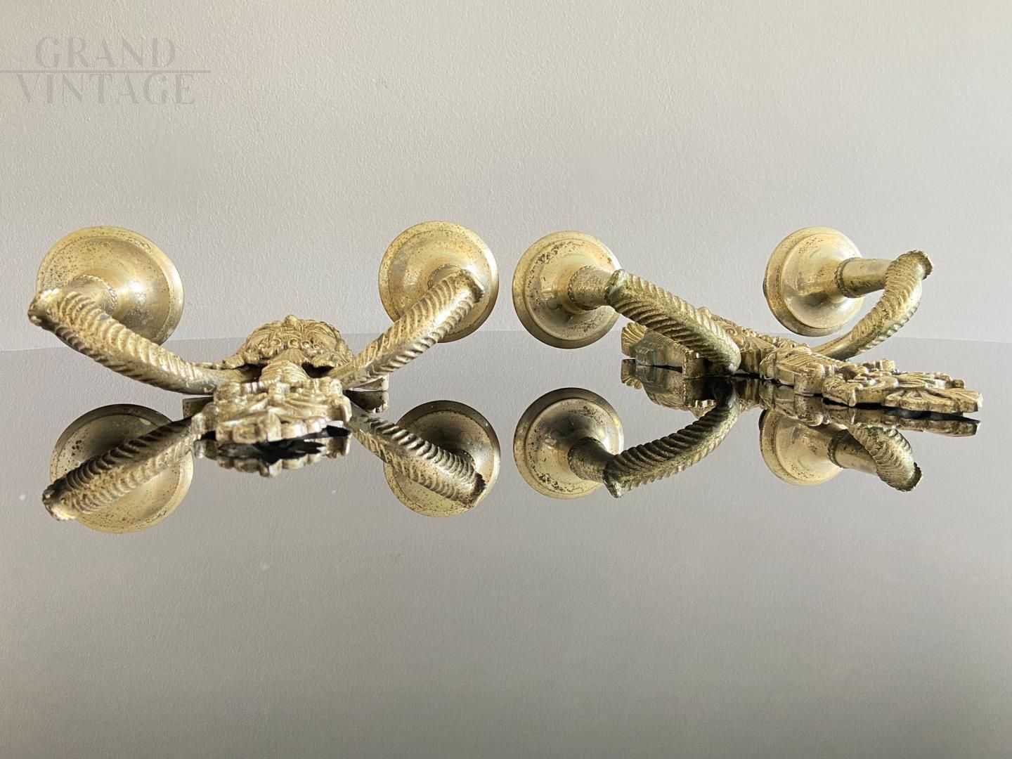 Coppia di appliques in lega fusa argentata con mascherone tragedia greca
