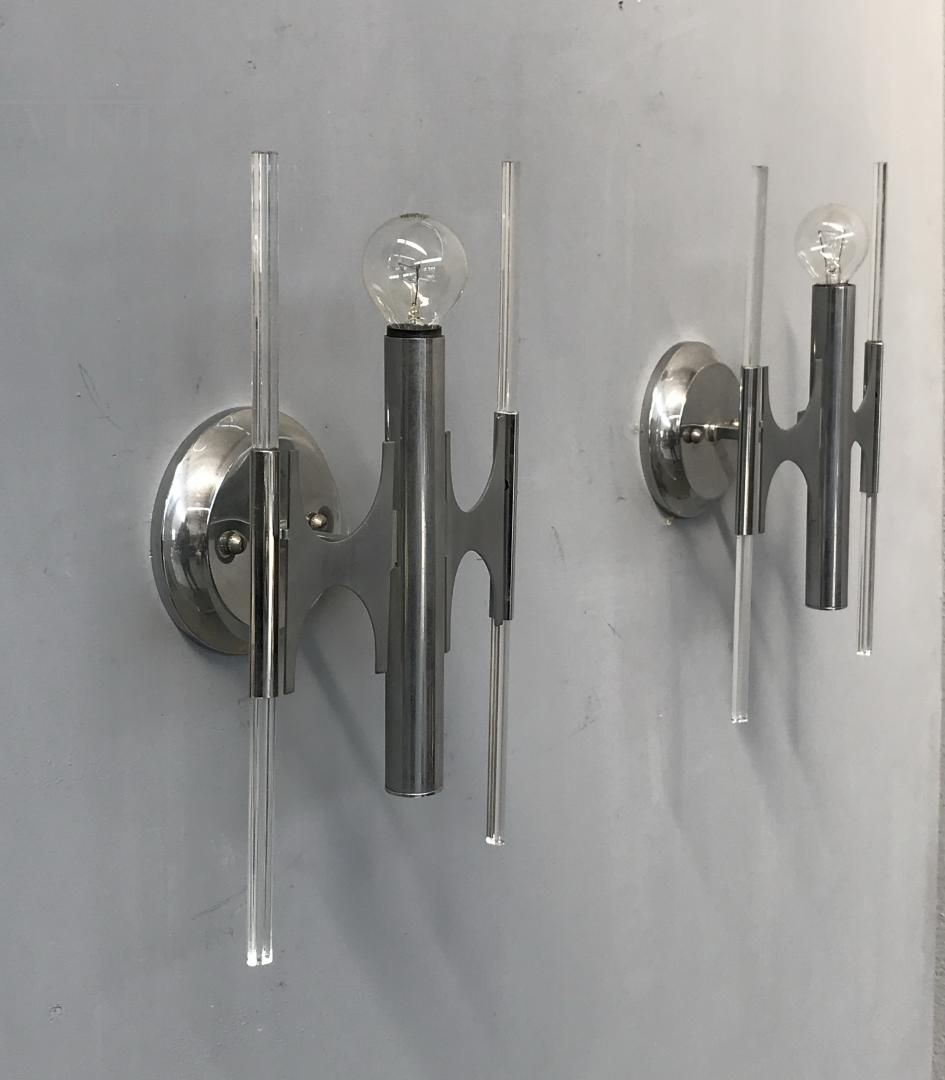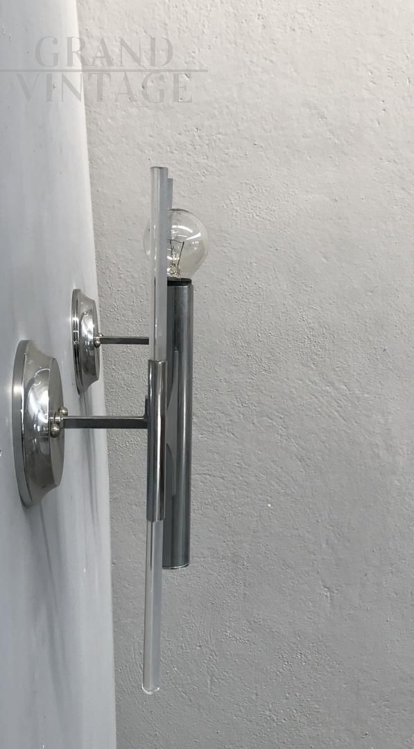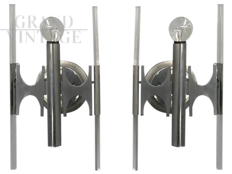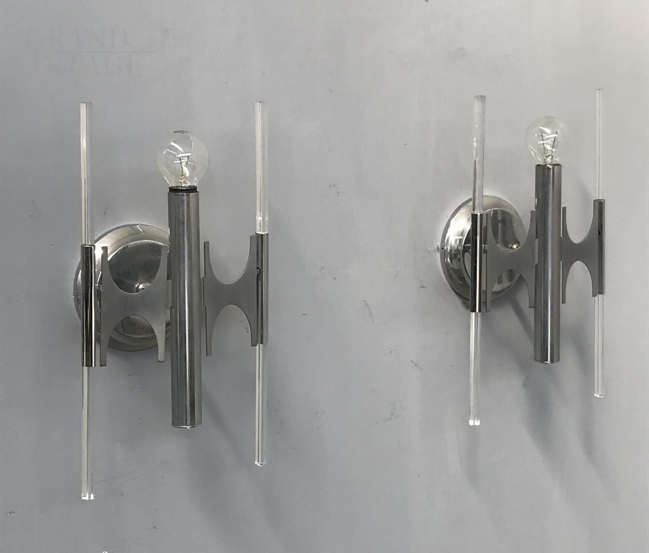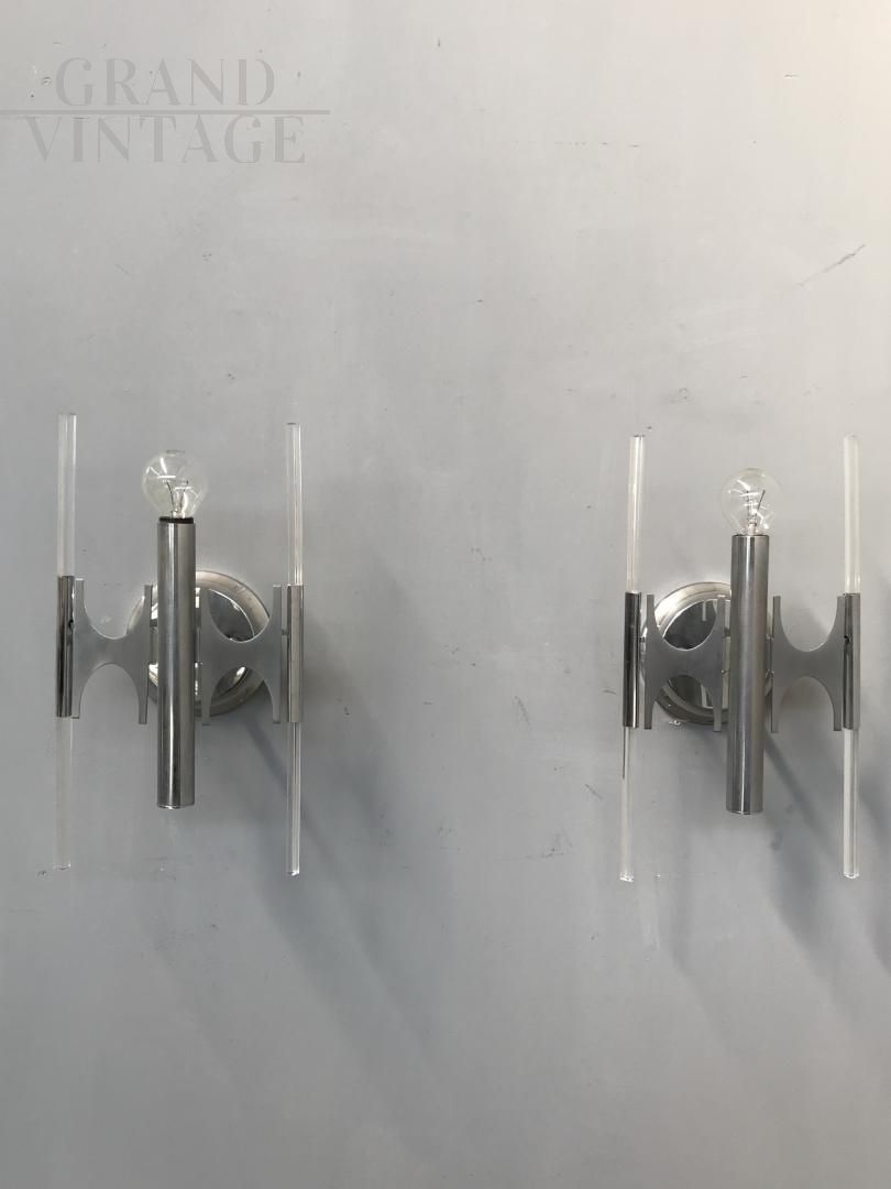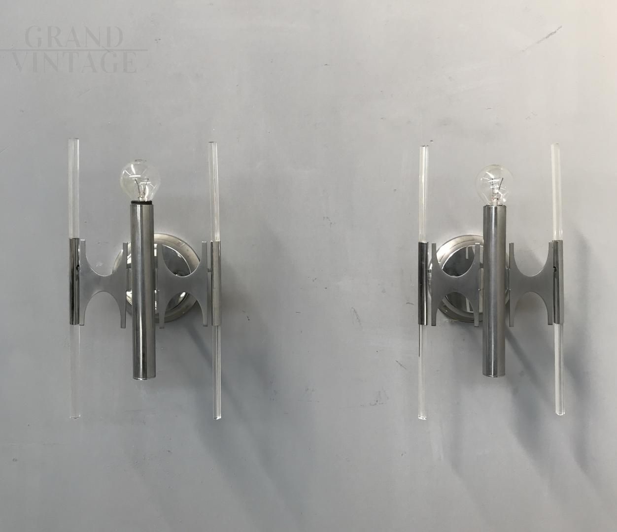 Coppia di appliques modernariato italiano in metallo e vetro marcate Sciolari.