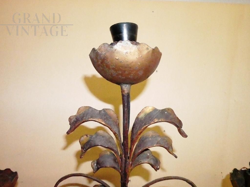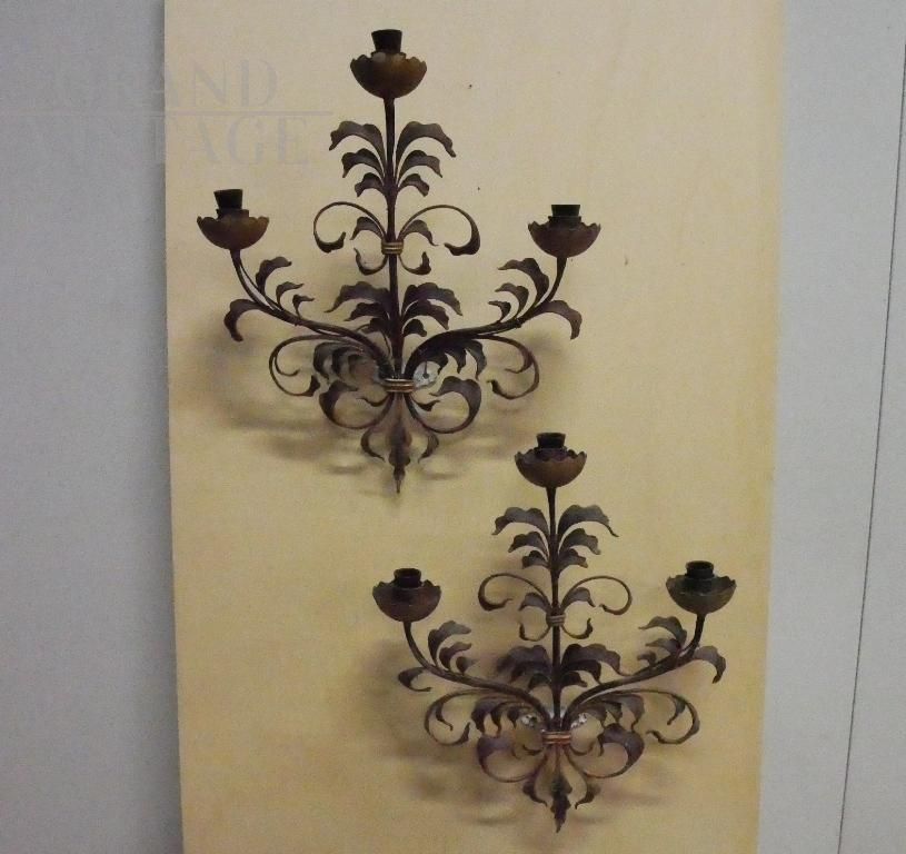 Coppia di appliques vintage fiorentine in metallo brunito