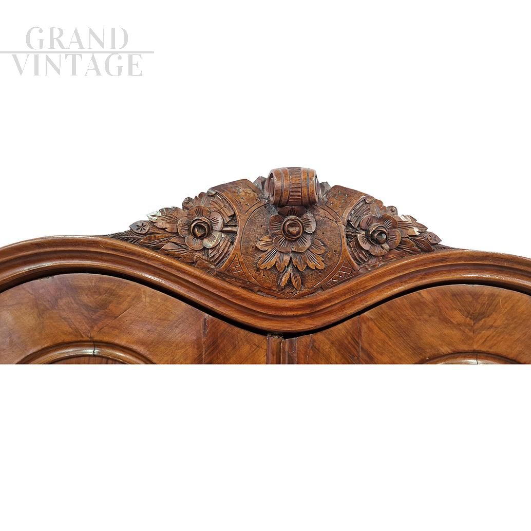 Coppia di armadi antichi dell'800 a due ante in noce scolpito