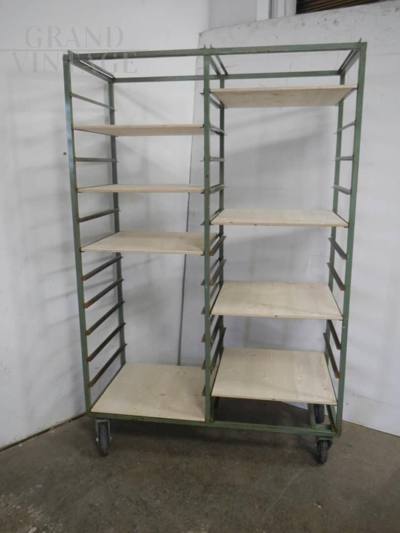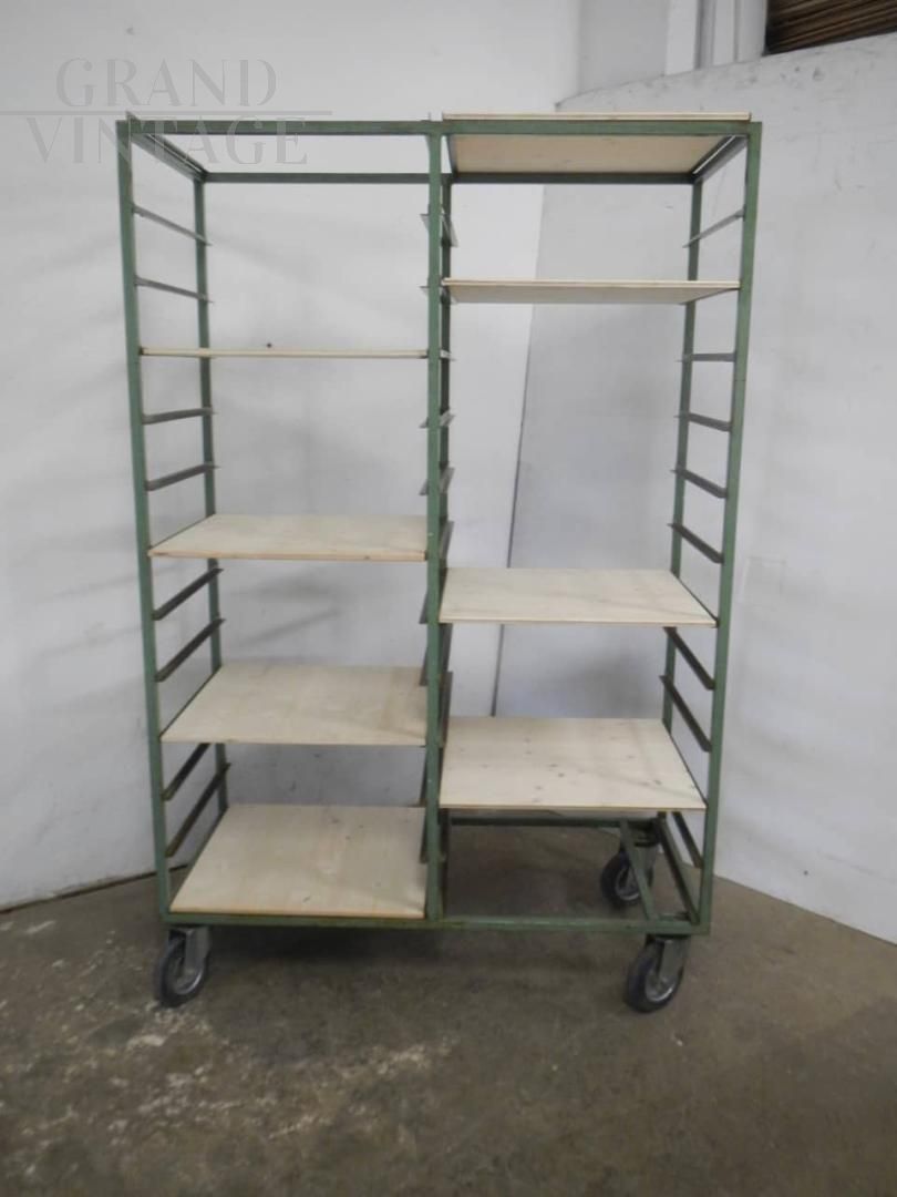 Coppia di carrelli industriali da ceramista con ripiani, anni '60