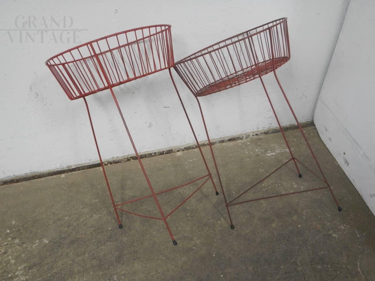 Coppia di ceste da esposizione da negozio vintage in metallo rosso, 1960