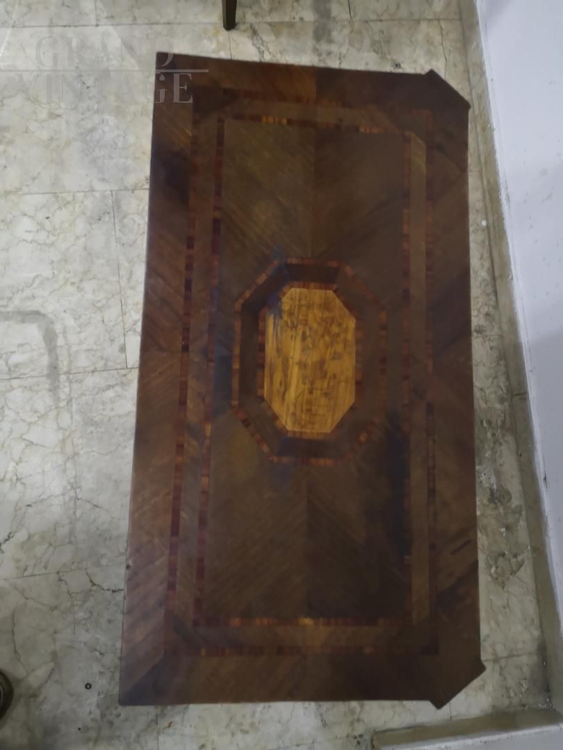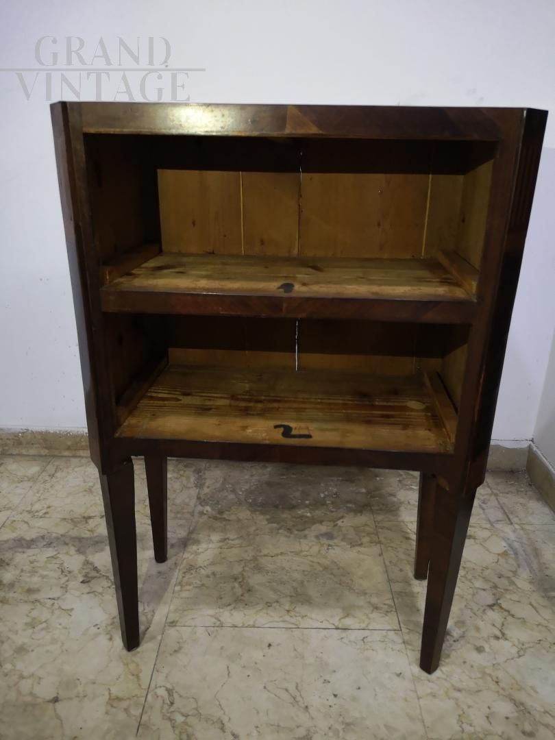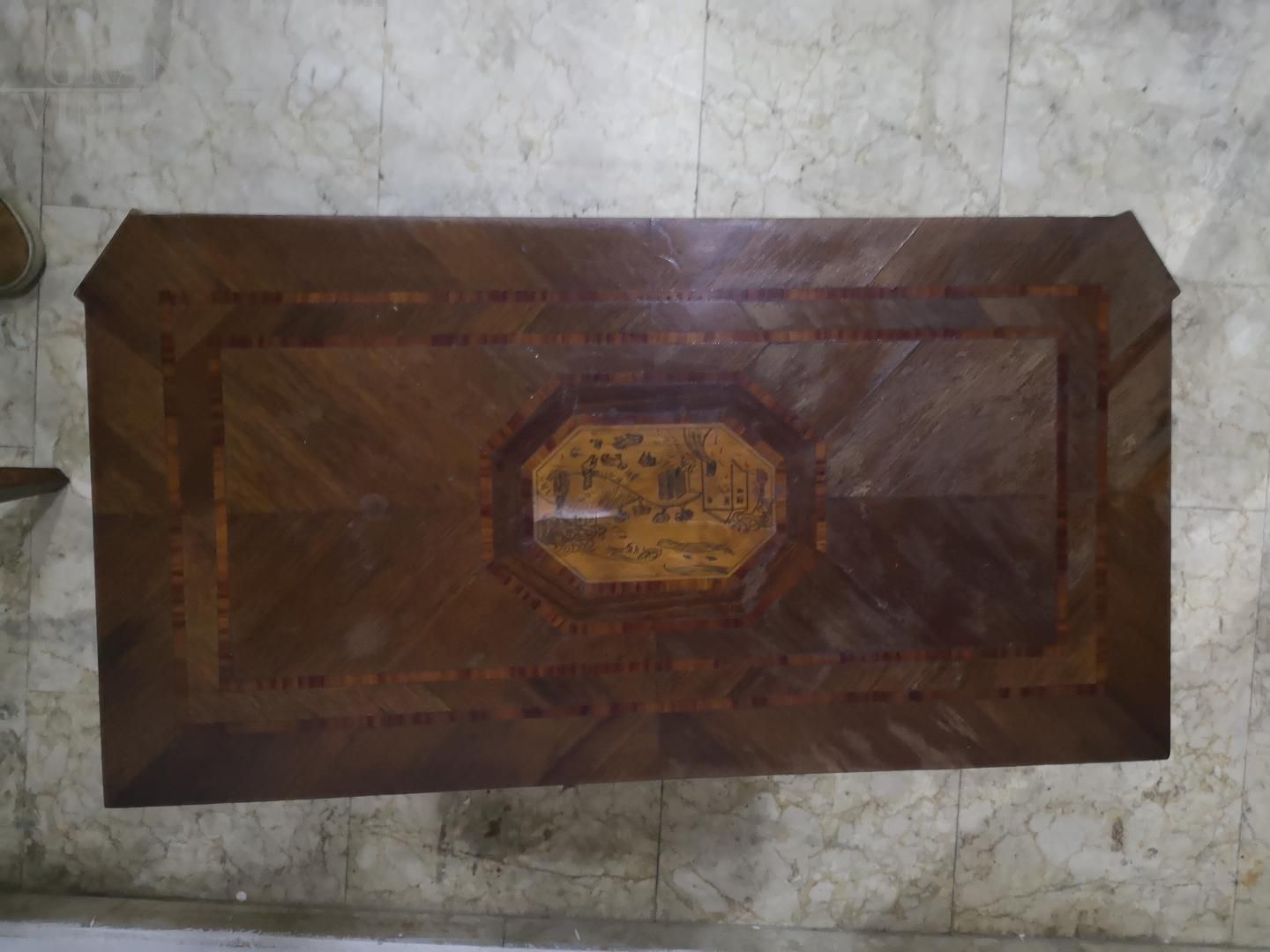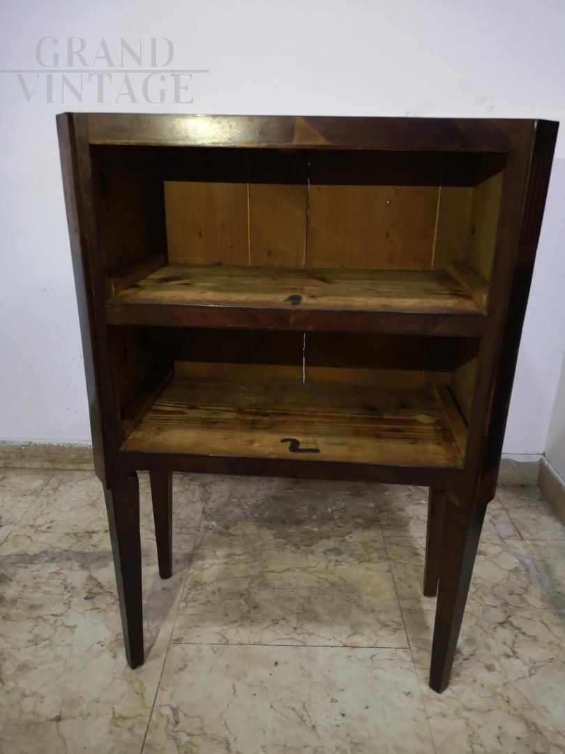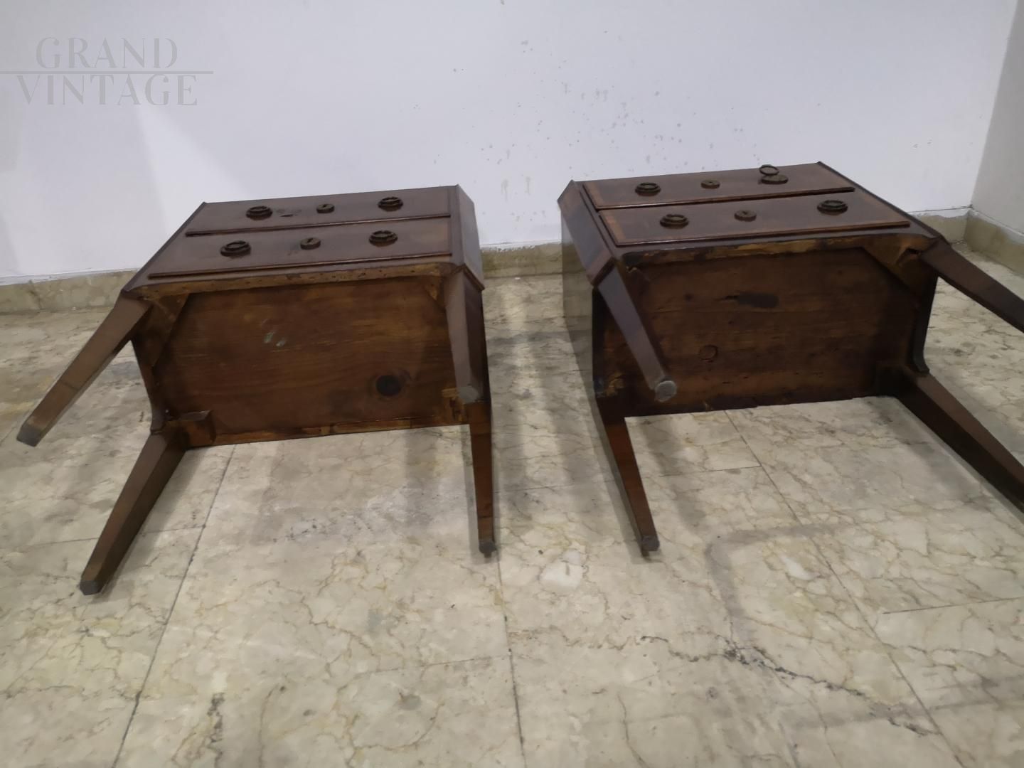 Coppia di comodini antichi Luigi XVI, con intarsio di paesaggio sul piano