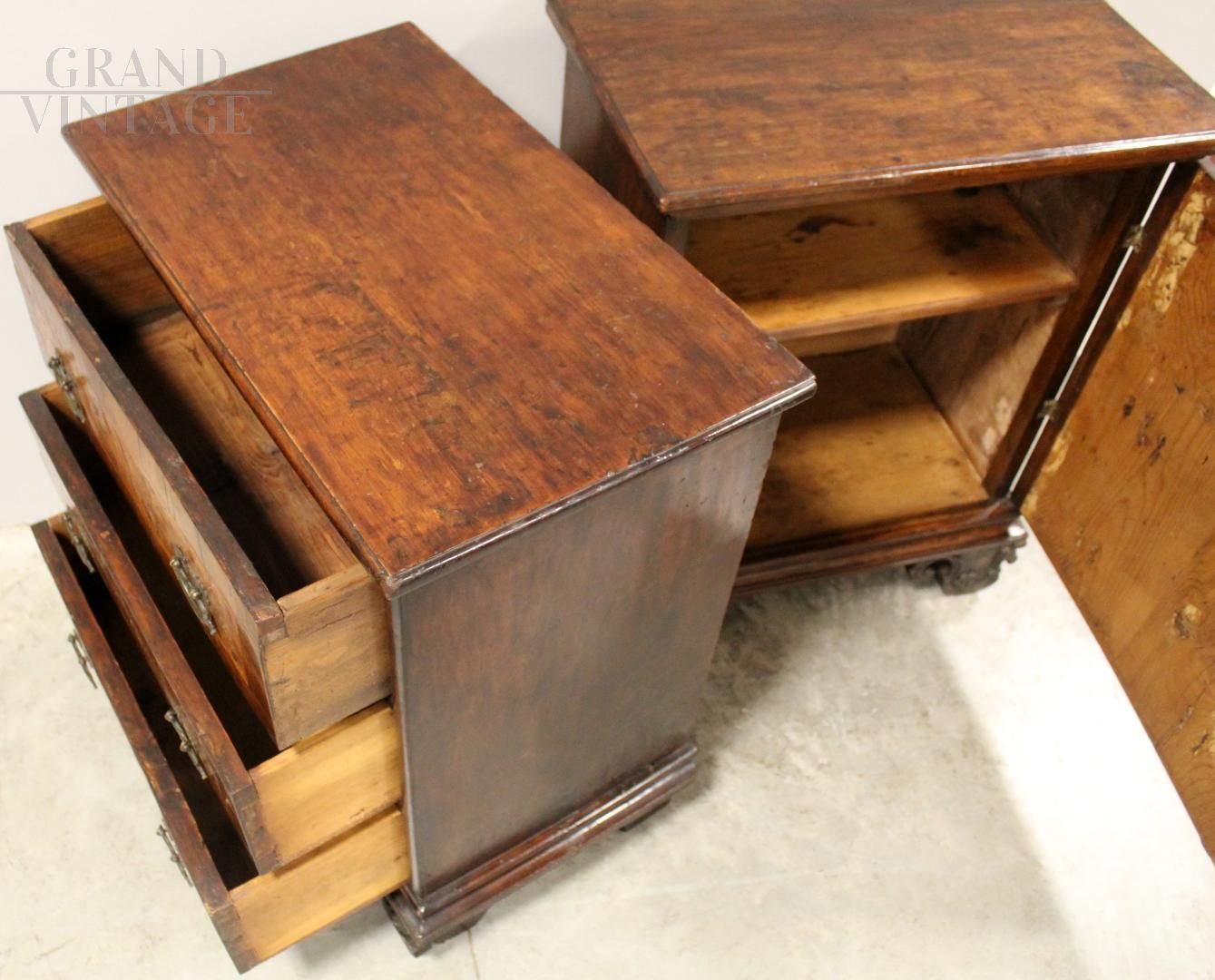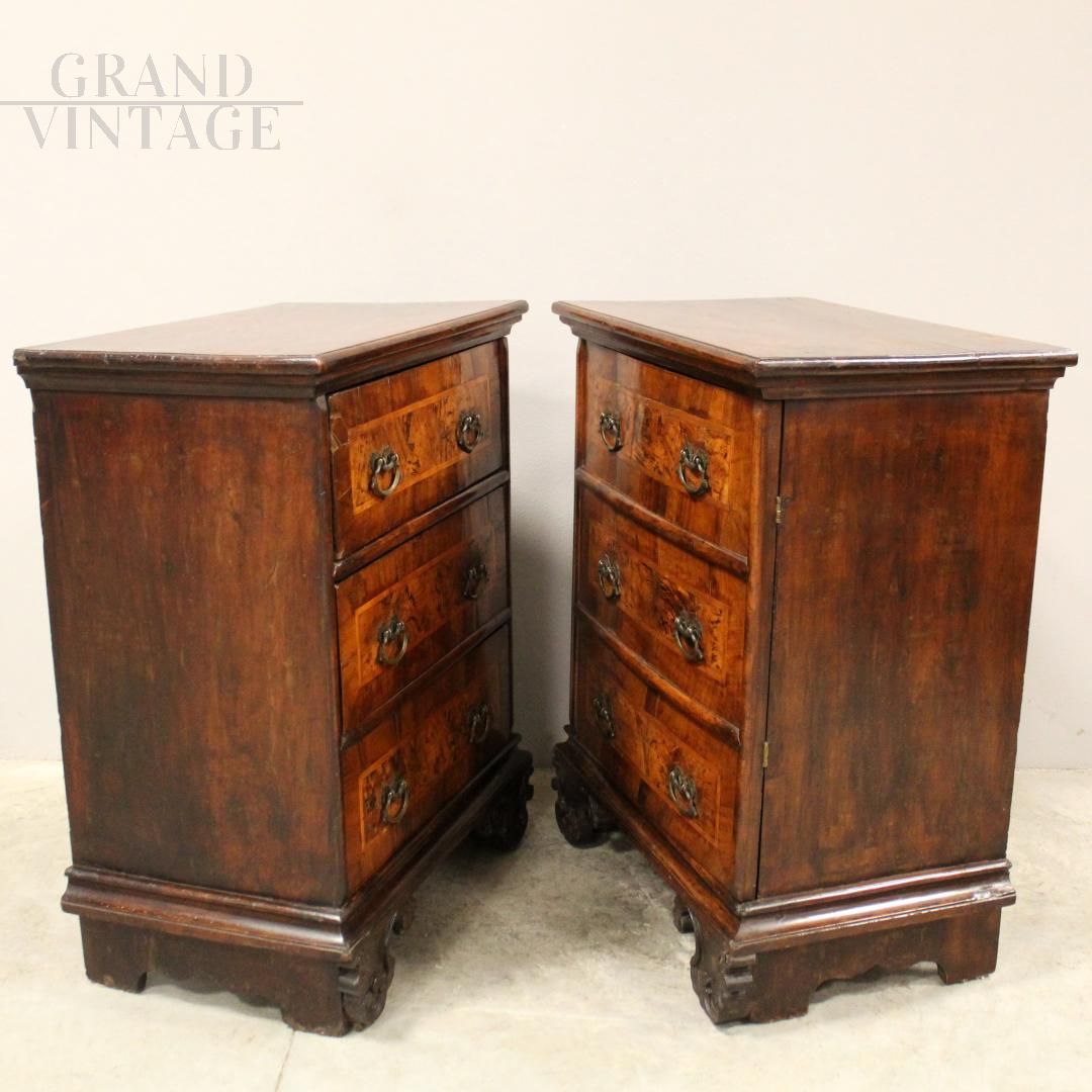 Coppia di comodini comode Luigi XV in noce, Italia '700