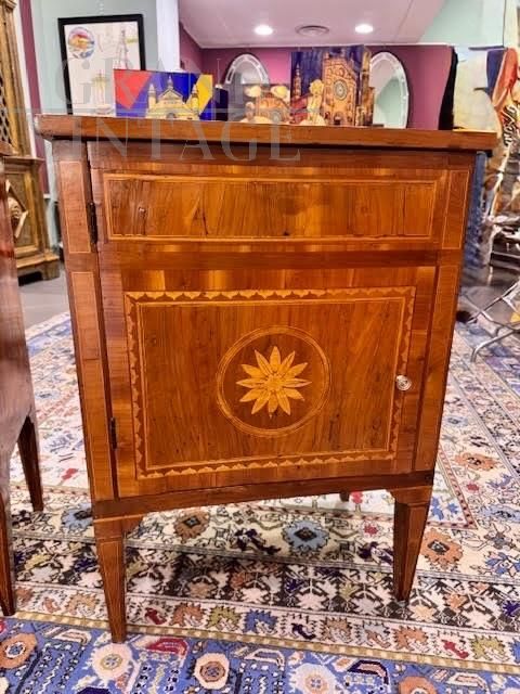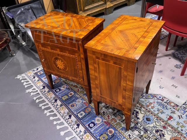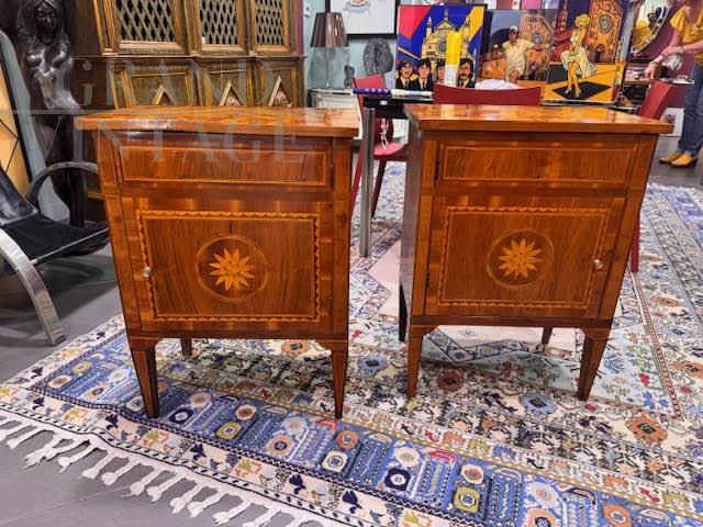 Coppia di comodini di metà '700 con intarsi neoclassici