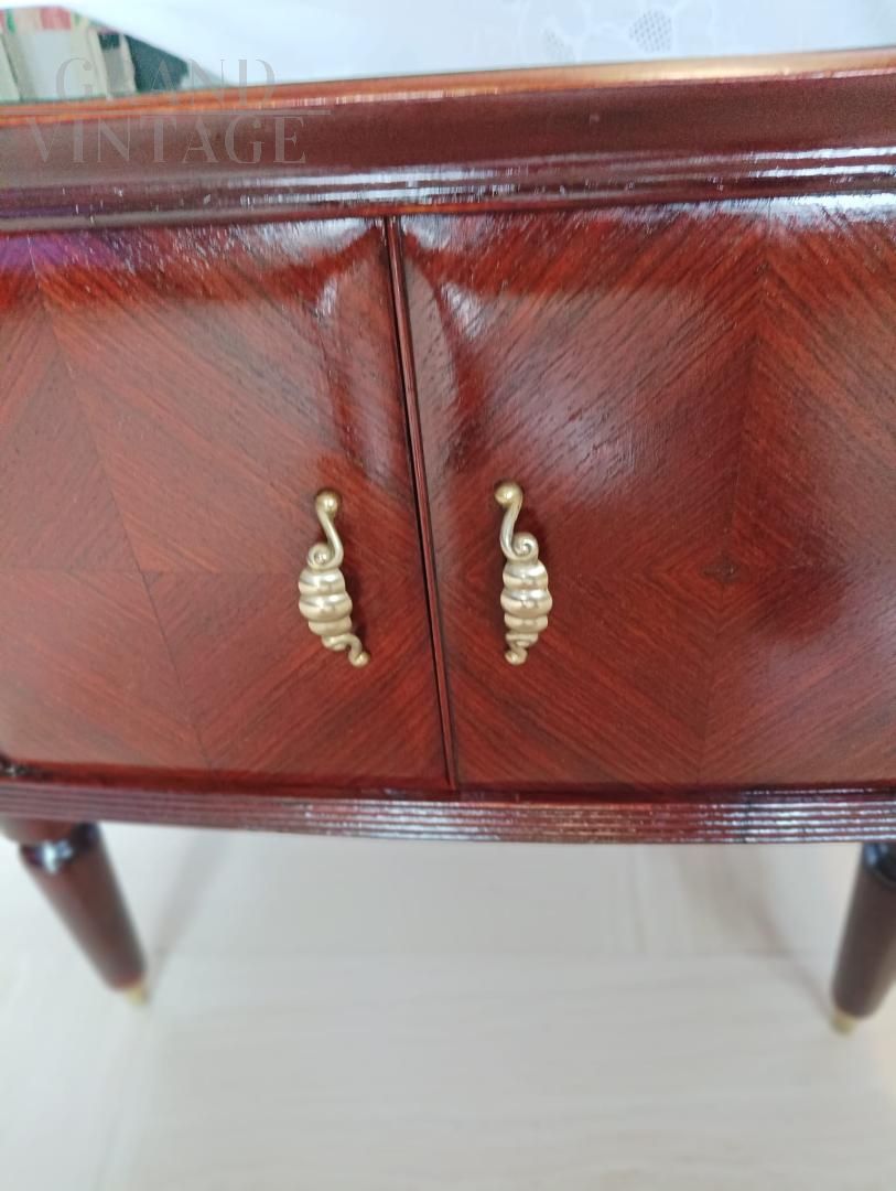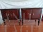 Coppia di comodini mid century in radica di palissandro con piano in vetro