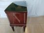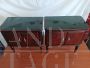 Elegantissima coppia di comodini mid century italiani in legno massello impiallacciati in radica di palissandro con gambe a cono e puntalini finali in ottone. I comodini sono arricchiti da un piano in vetro di colore verde e da un set di maniglie in ottone originali dell'epoca. Hanno una doppia anta frontale rivestita da una bella radica di palissandro a forma di rombo con un unico vano centrale rivestito in radica di mogano. Comodini lineari dal design moderno e dalla linea compatta che li rendono versatili per ogni tipologia di locale. Sono perfettamente sani e integri nonché completamente restaurati, già pronti per essere utilizzati da subito.
