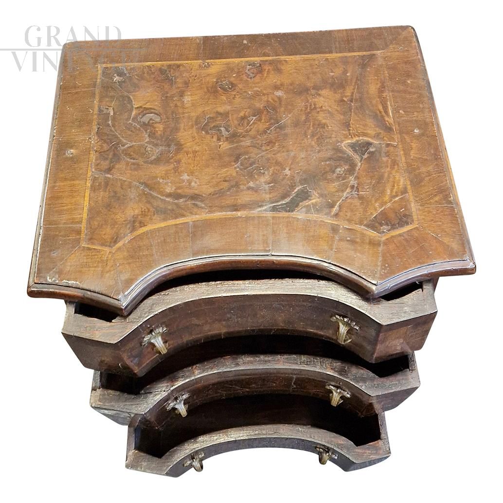 Coppia di comodini veneti dell'800 in noce e radica