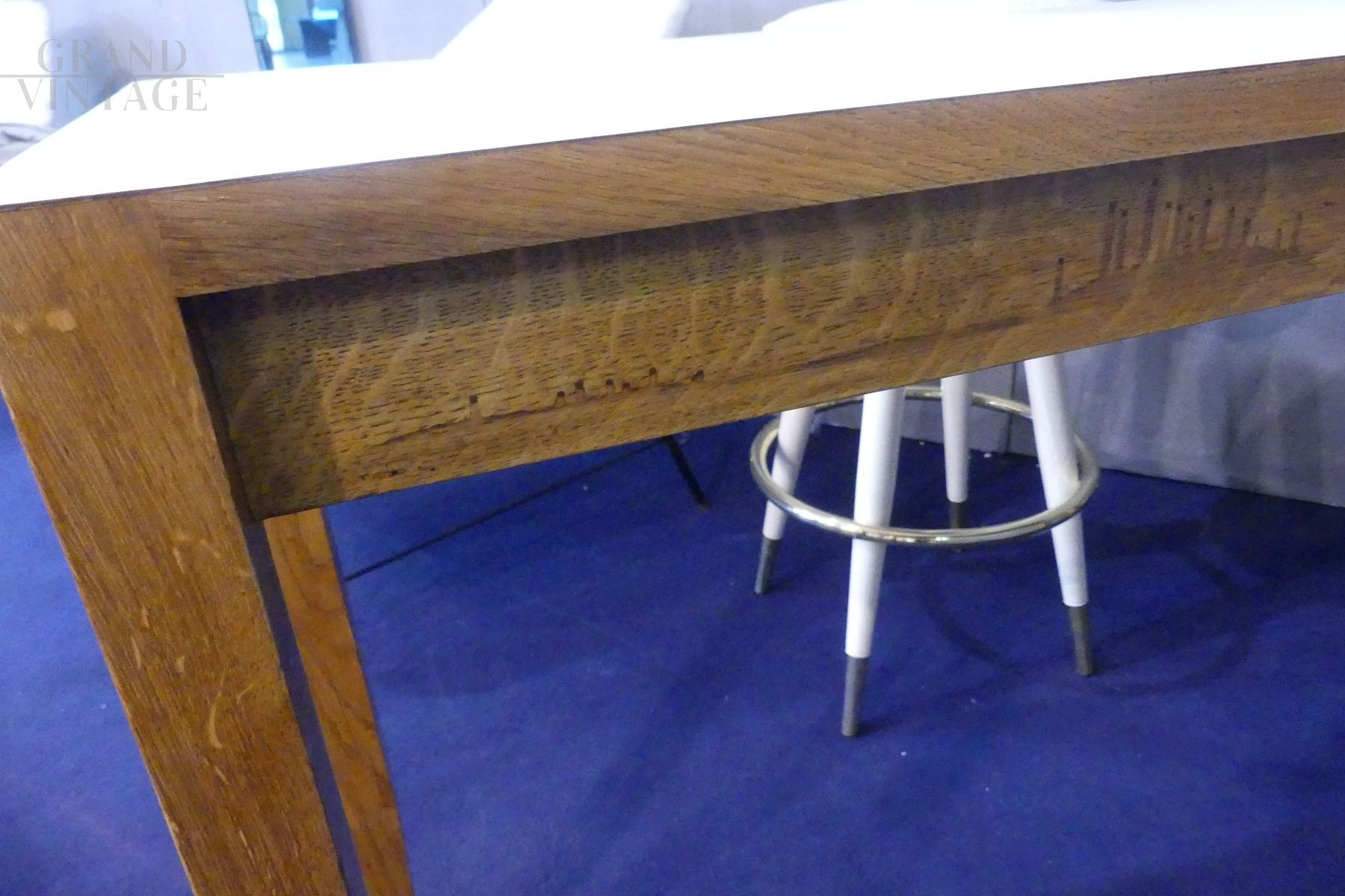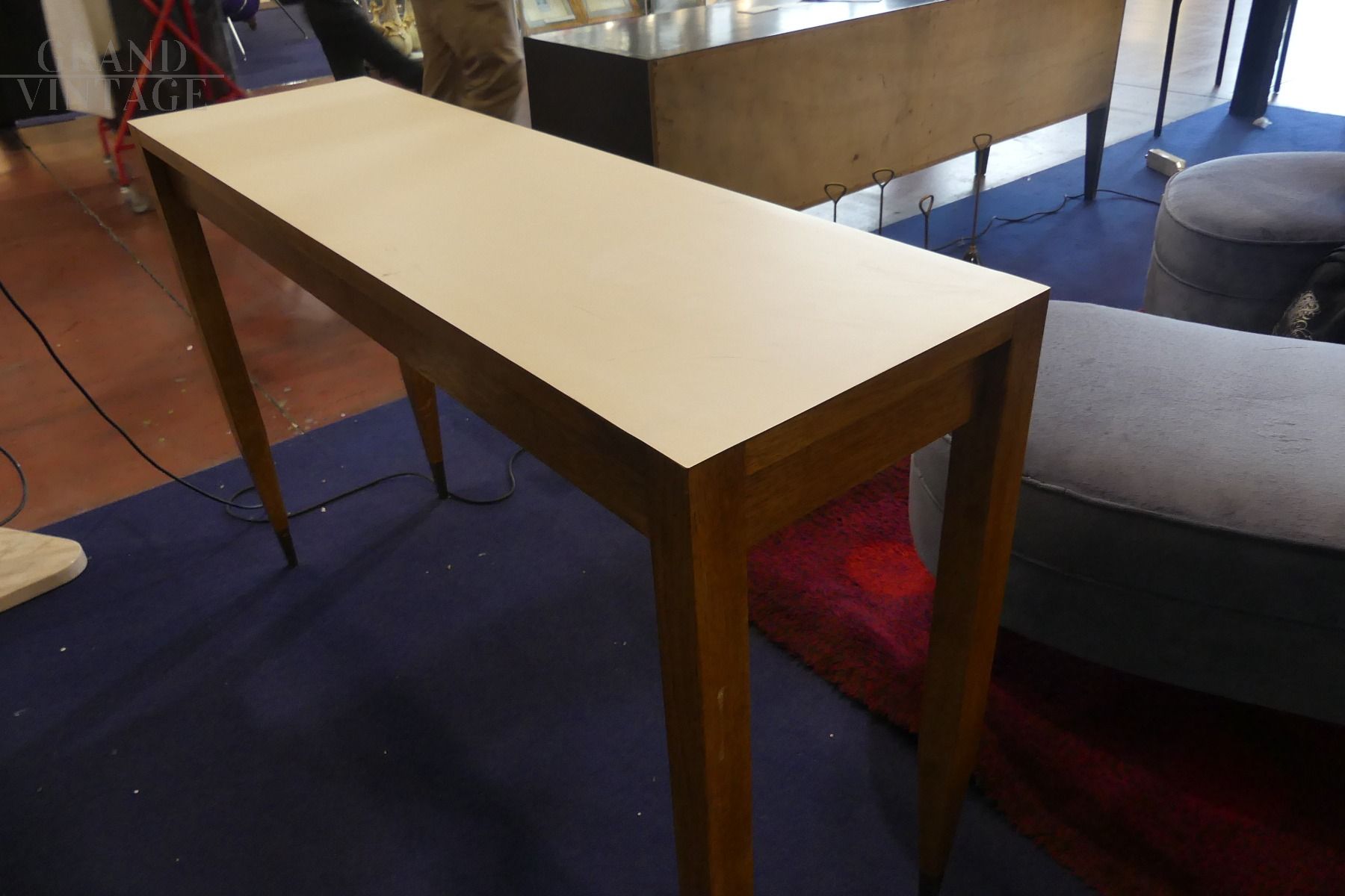 Coppia di consoles design di Gio Ponti in noce con piano in formica
