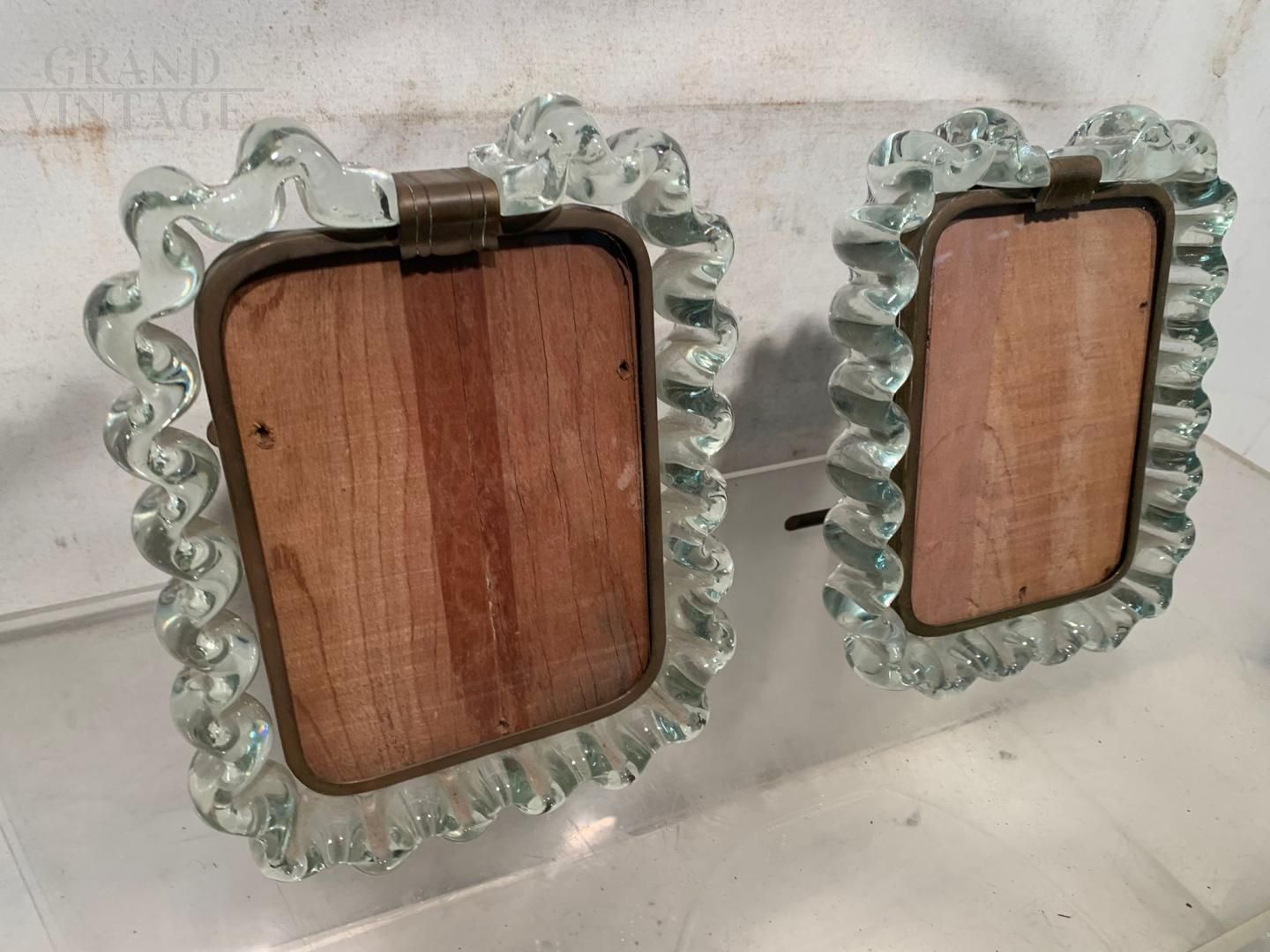 Coppia di cornici in vetro artistico di Murano ondulato anni '40