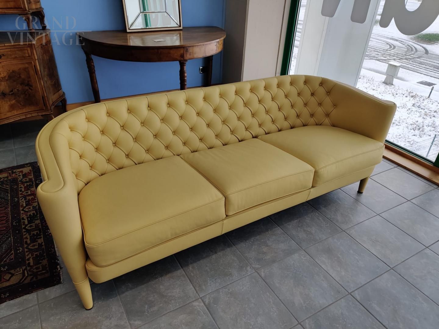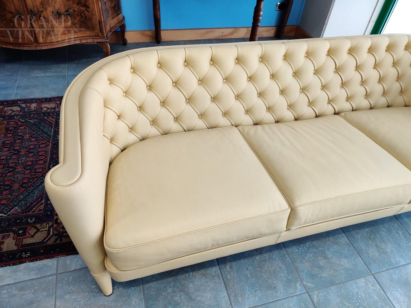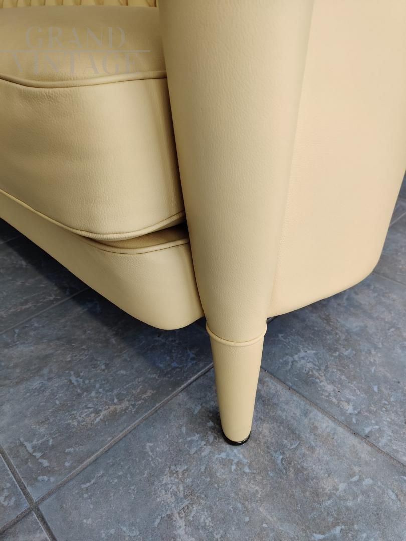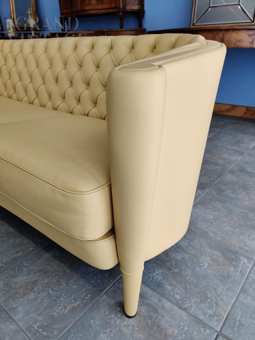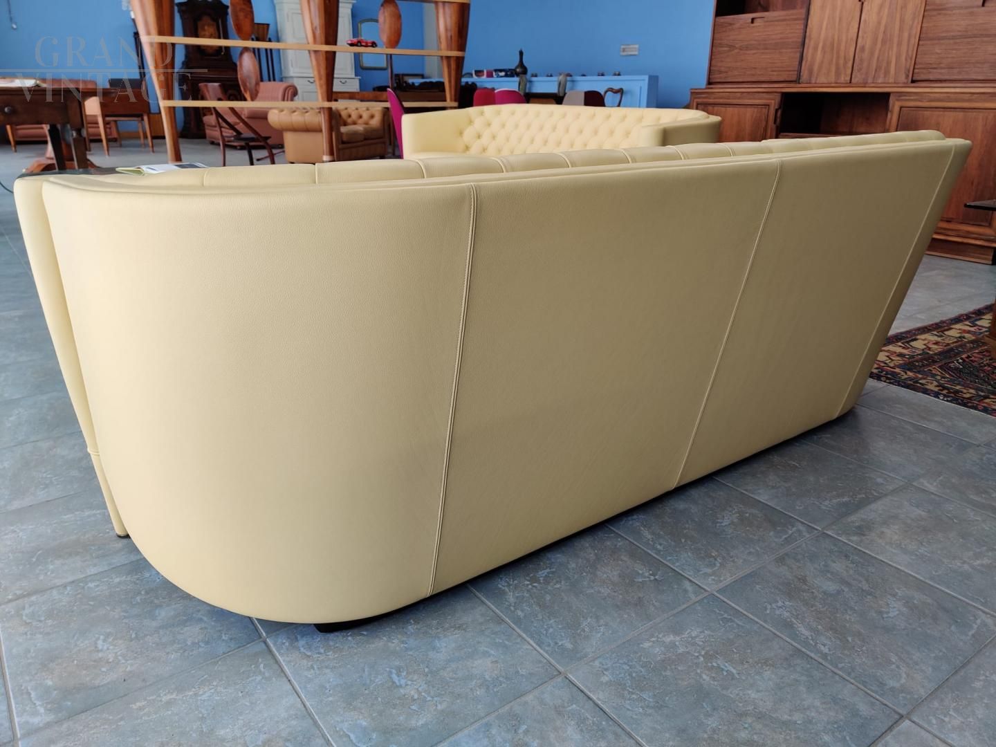 Coppia di Divani di Antonio Citterio per Moroso, modello Rich in pelle color giallo Napoli, in condizioni perfette. Poliuretano espanso indeformabile a densità differenziate e fibra poliestere con struttura interna in legno. I piedi anteriori sono rivestiti in pelle.