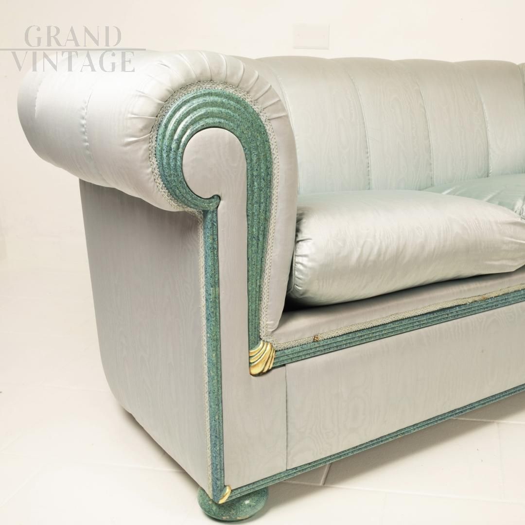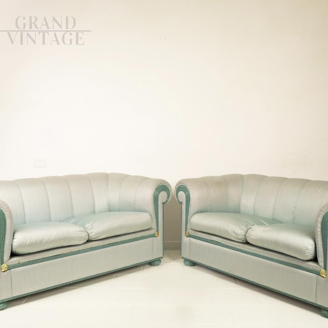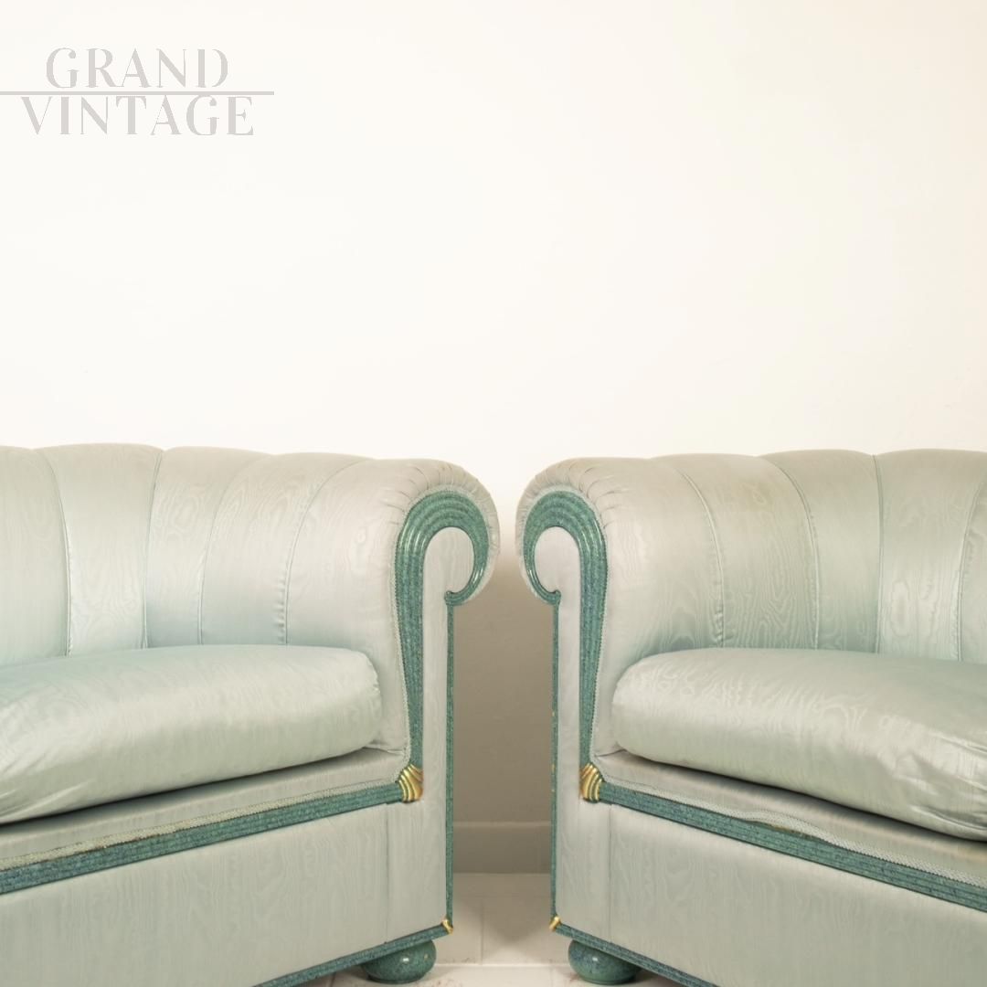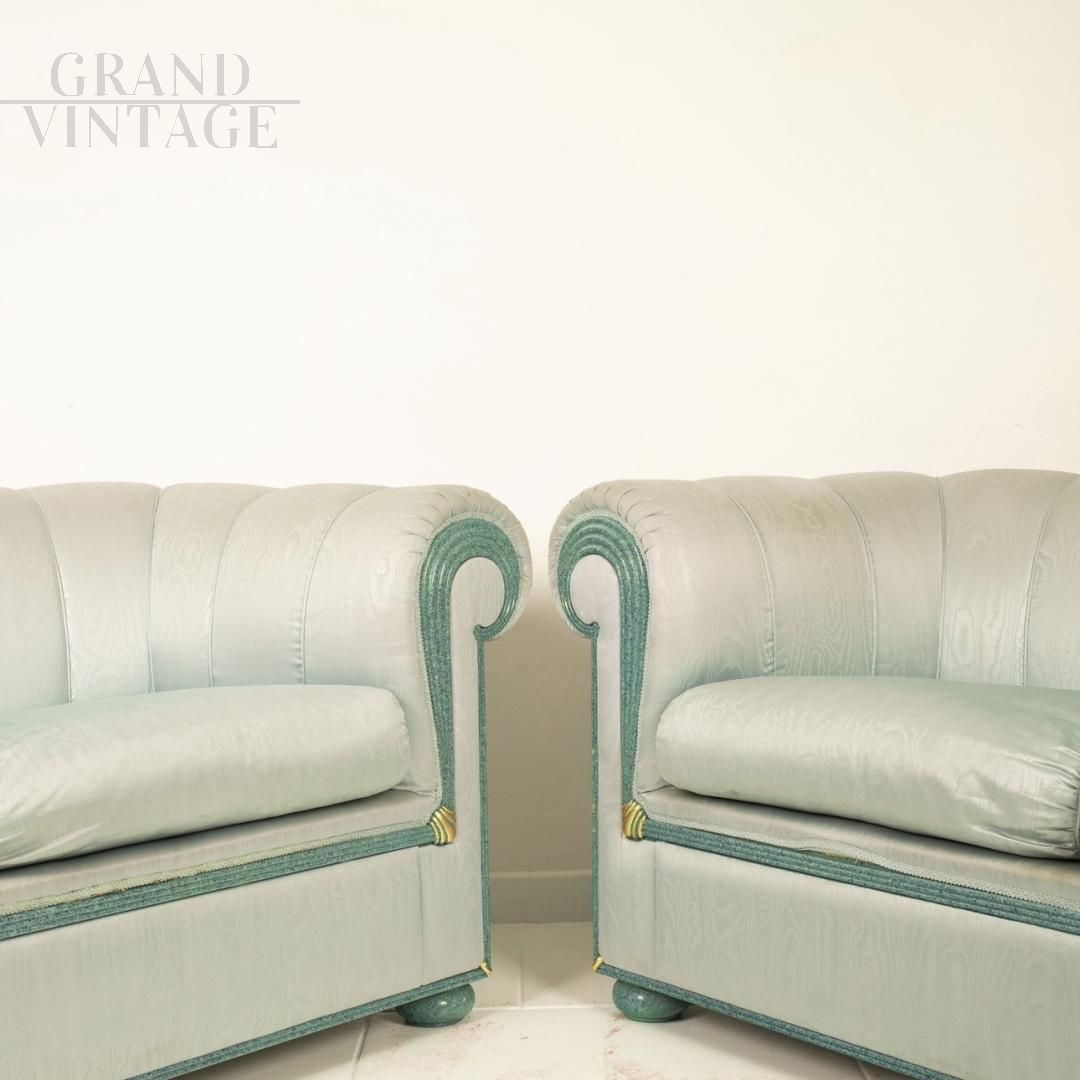 Coppia di divani Style Arte in seta moiré e legno marmorizzato