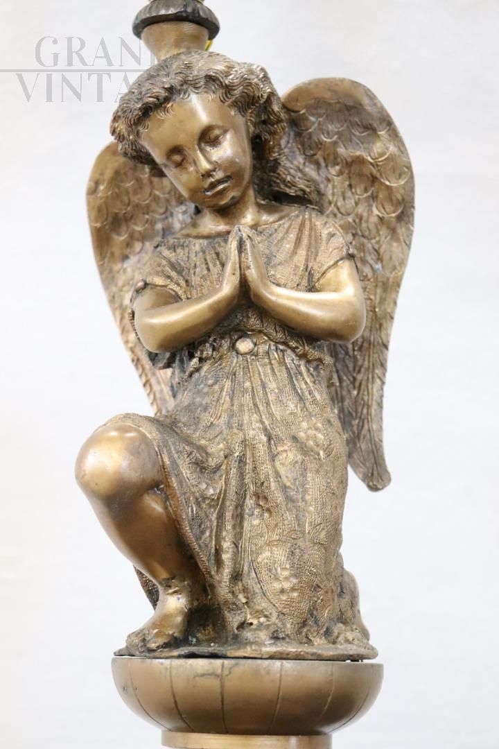 Magnifica coppia di candelabri da tavolo antichi italiani in bronzo, risalente alla fine del XIX secolo. Questi pezzi unici, originariamente progettati per l'uso con candele, sono stati sapientemente elettrificati, trasformandoli in eleganti fonti di illuminazione. La decorazione in bronzo cesellato è davvero straordinaria, riflettendo un'estetica classica che porta con sé il fascino di un'epoca passata. Vi invitiamo a notare ogni dettaglio: i bracci a cornucopia, l'angelo centrale in preghiera e i piedi ferini. La patina brunita, sviluppatasi nel tempo, arricchisce ulteriormente il loro fascino. Prezzo trattabile.