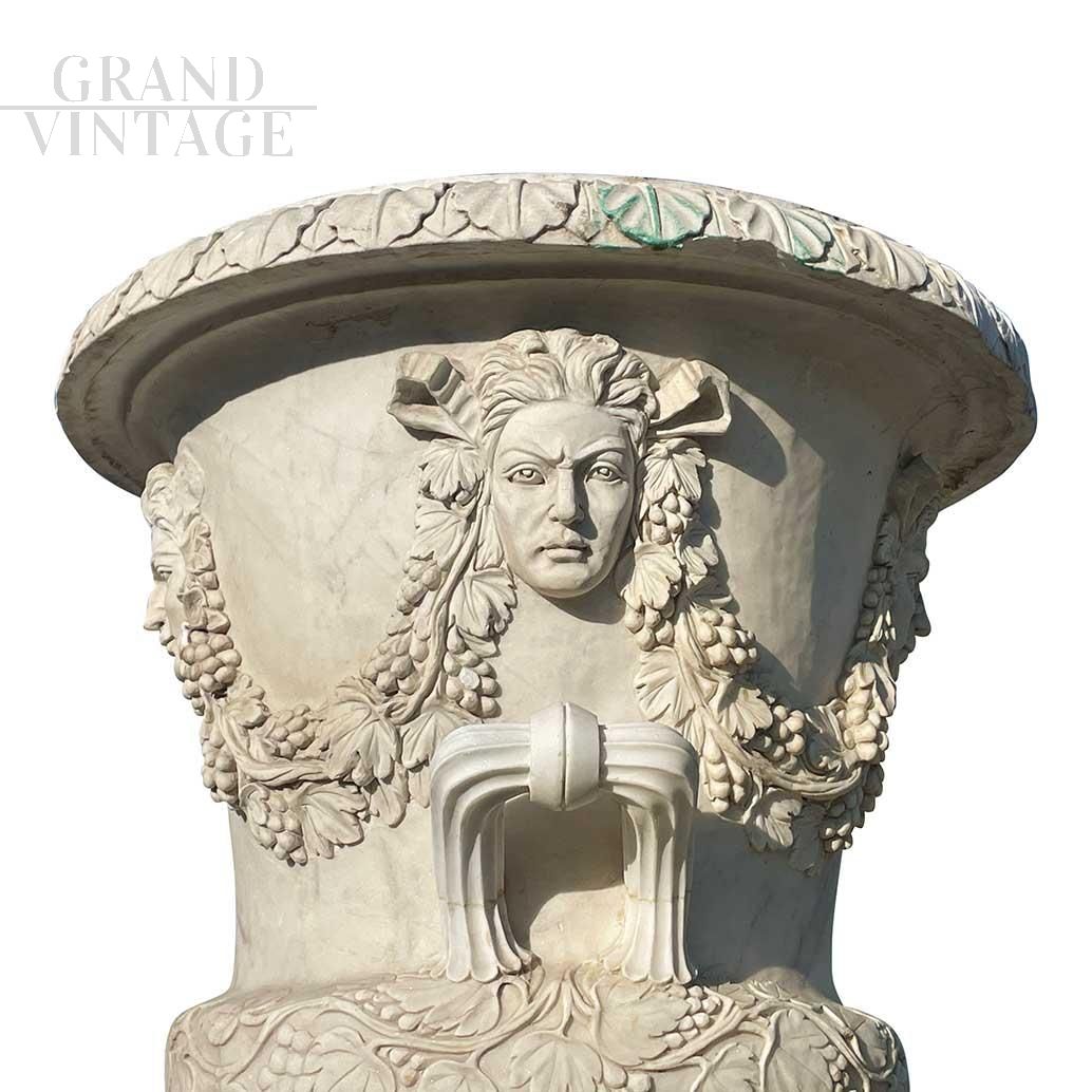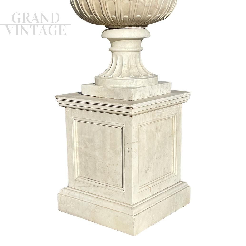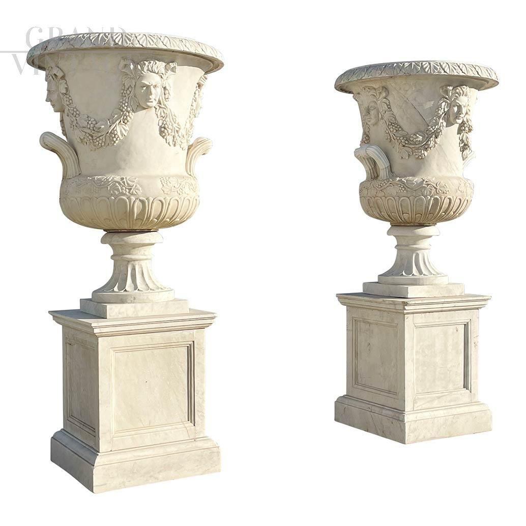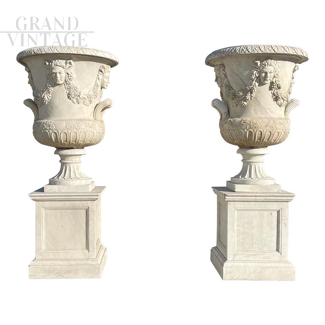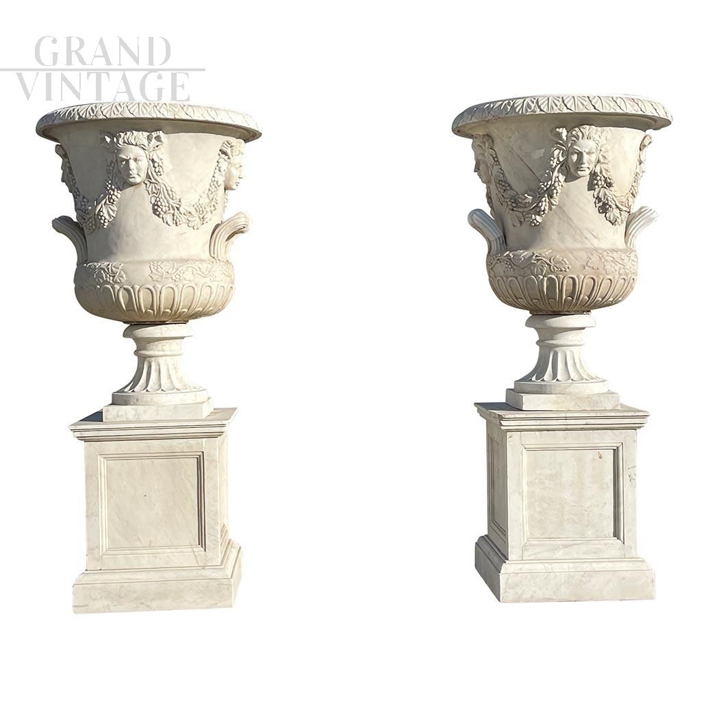 Coppia di grandi vasi da giardino in marmo bianco in stile antico