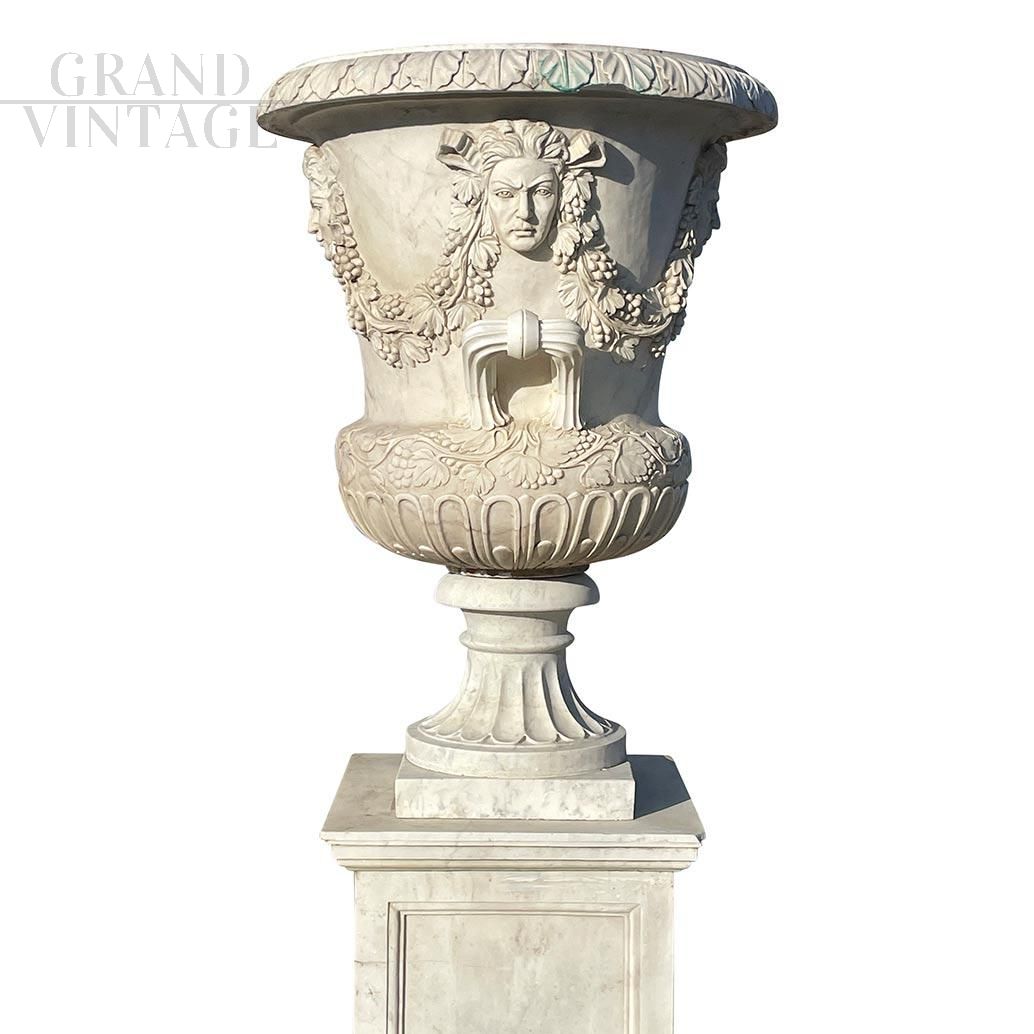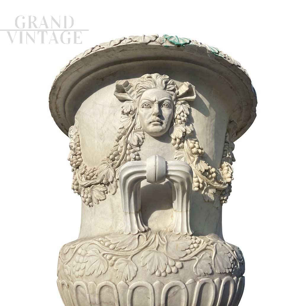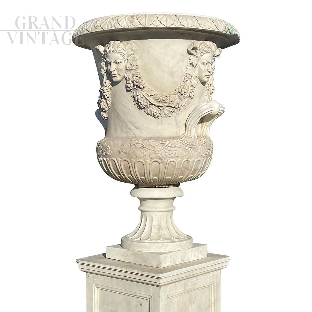 Coppia di grandi vasi da giardino in marmo bianco in stile antico, realizzati nel XX secolo.