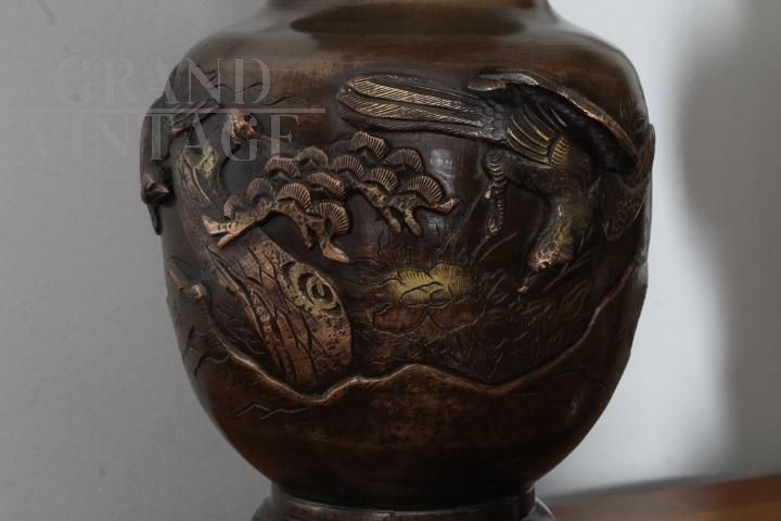 Coppia di grandi vasi giapponesi in bronzo, periodo MeiJi - fine '800