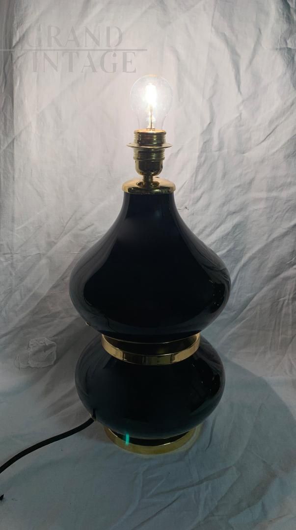 Coppia di lampade da tavolo Seguso in vetro di Murano nero