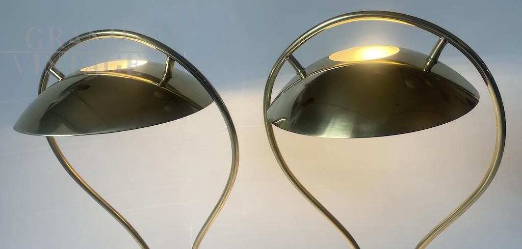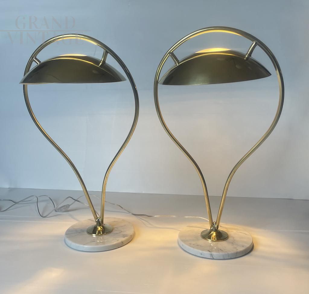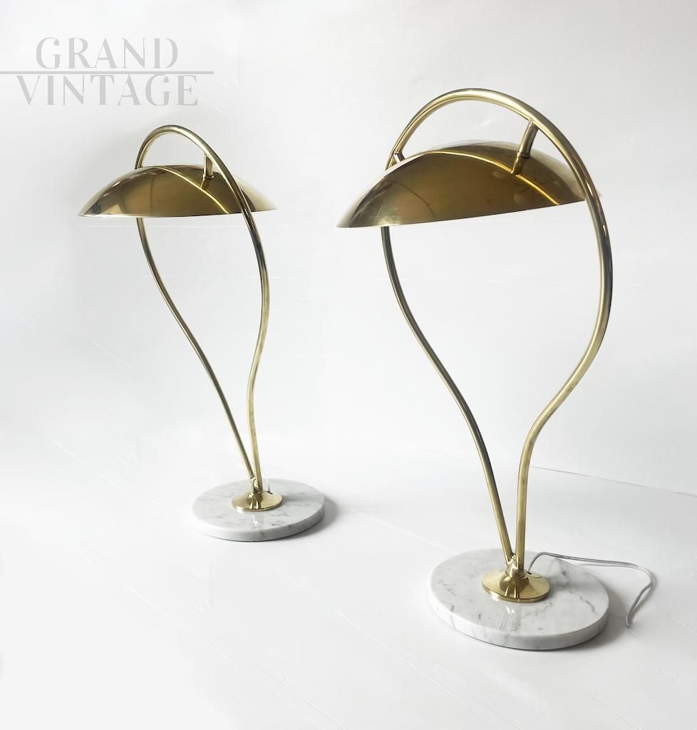 Coppia di lampade da tavolo vintage in ottone e marmo, anni '70