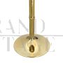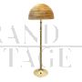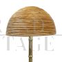 Coppia di lampade da terra piantane con base e stelo in ottone lucido effetto bamboo e paralume in bamboo naturale, ciascuna lampada è caratterizzata da due punti luce orientabili per lampadine di tipo E27.