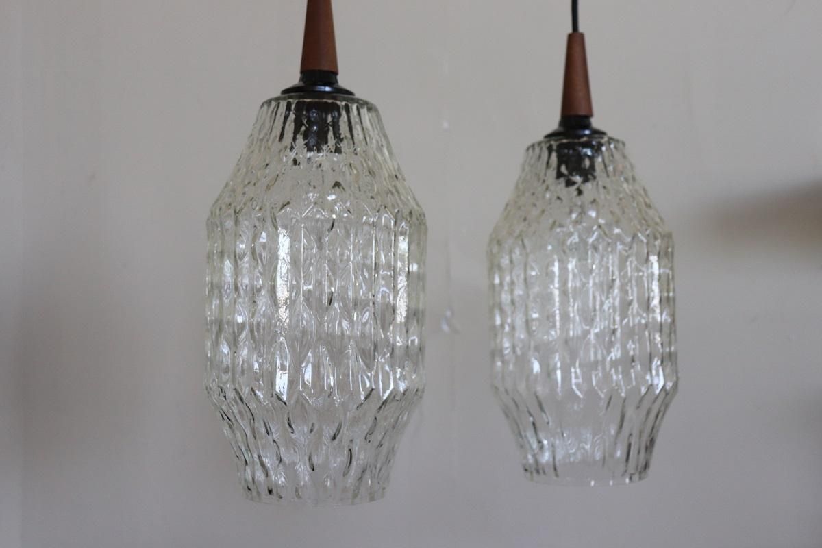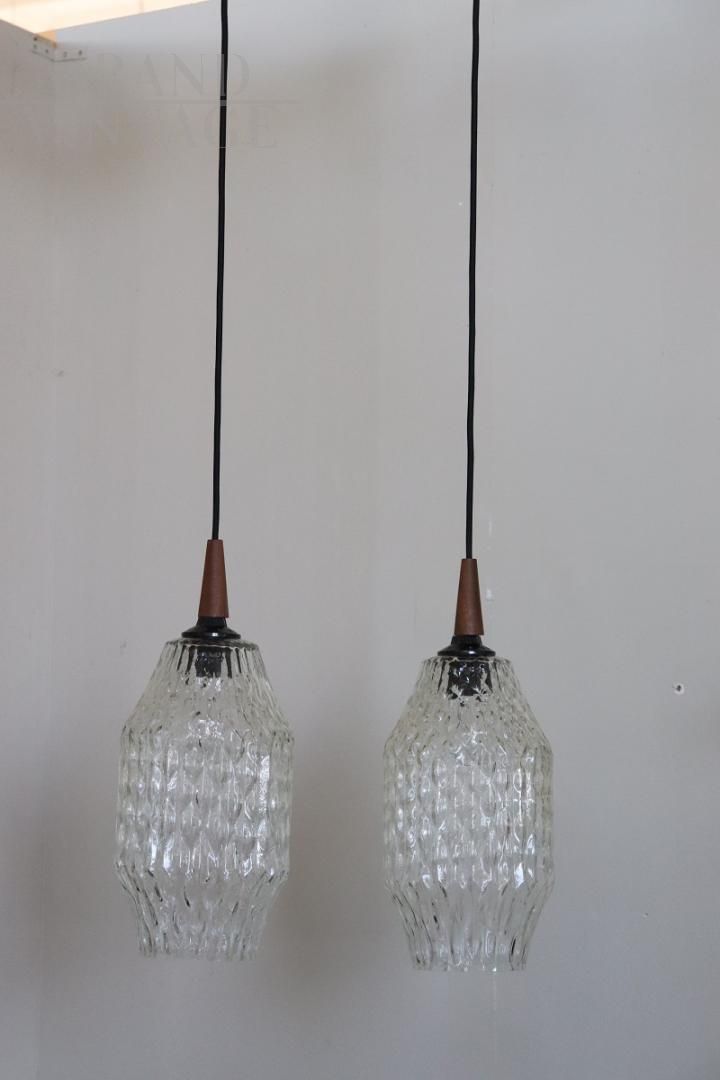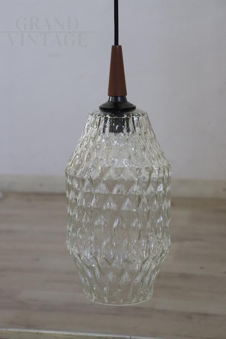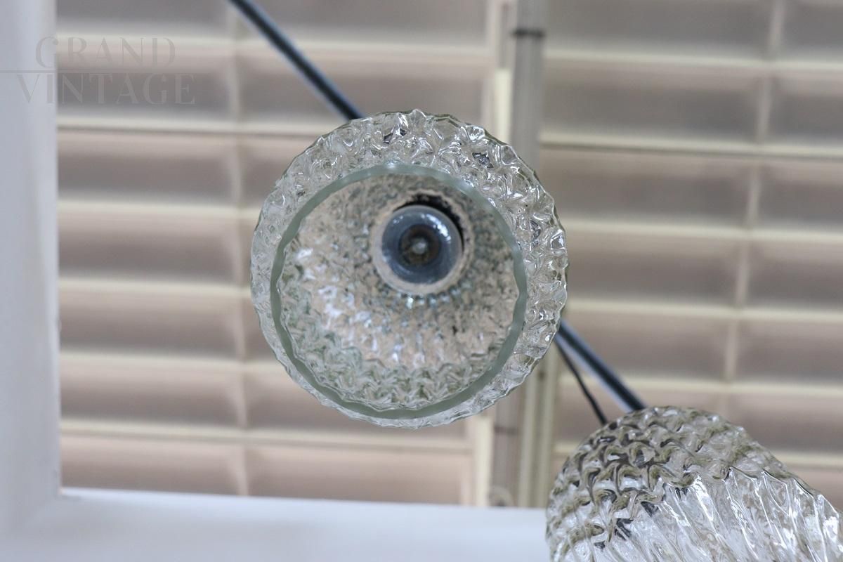 Coppia di lampade pendenti in vetro di Murano a rilievo anni '60