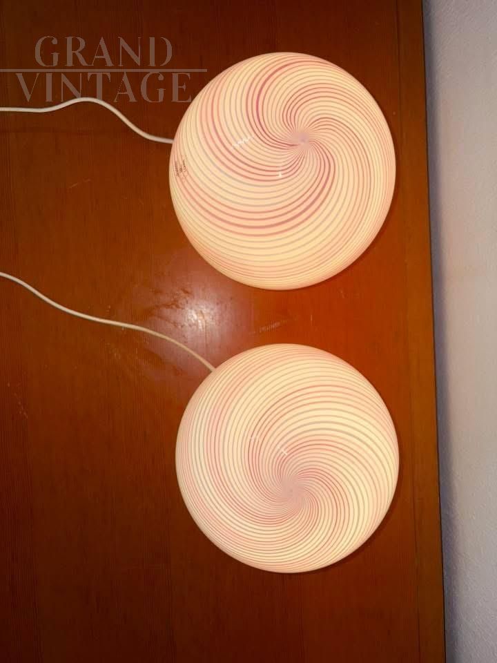 Coppia di lampade Swirl in vetro di Murano rosa