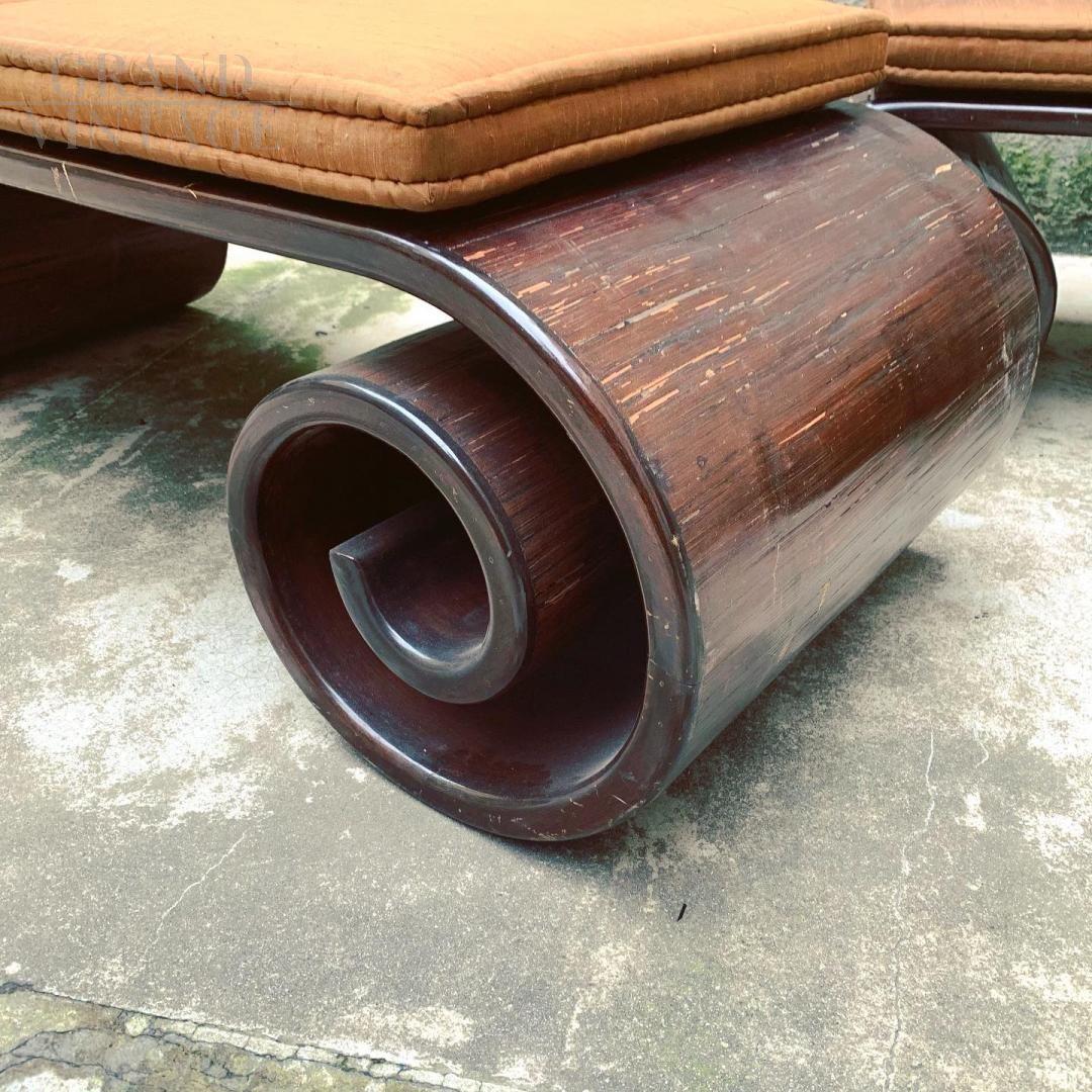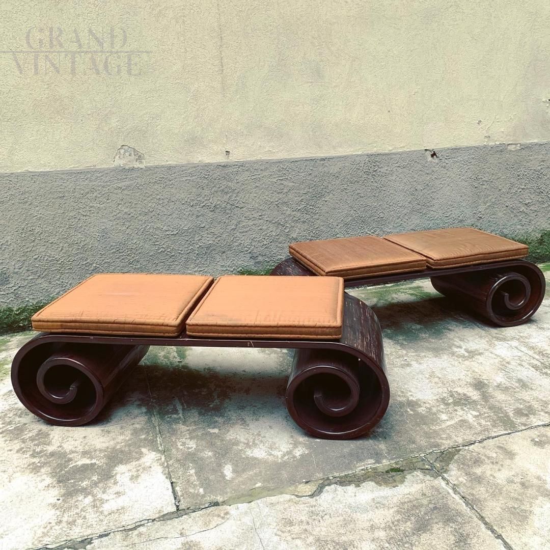 Coppia di panche orientali con estremità a volute, del XX secolo