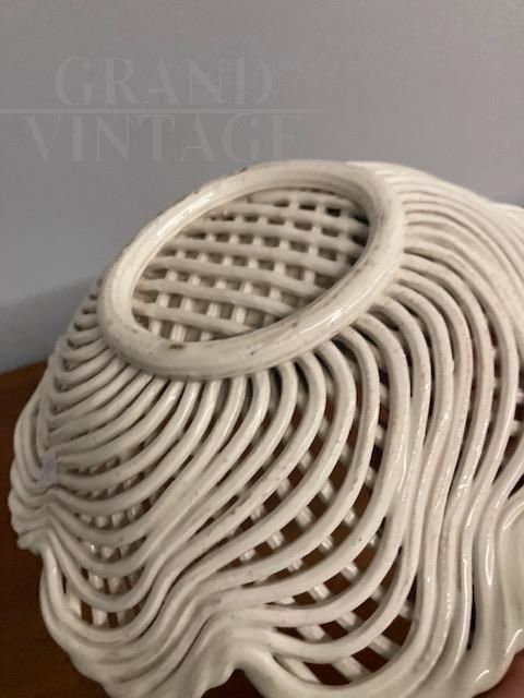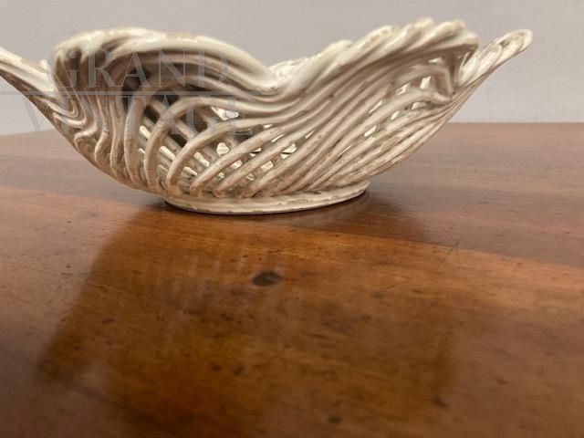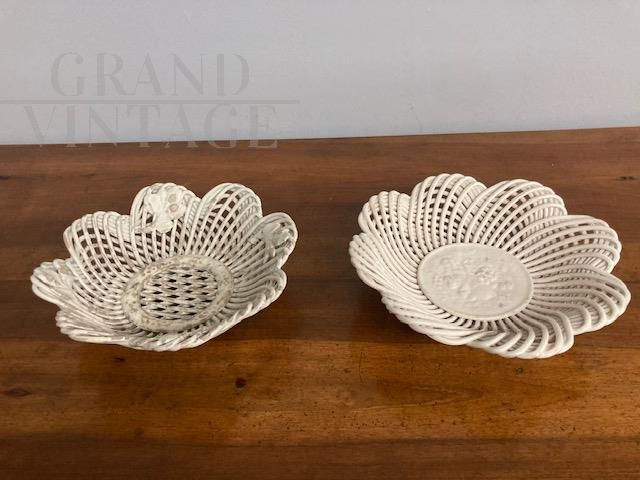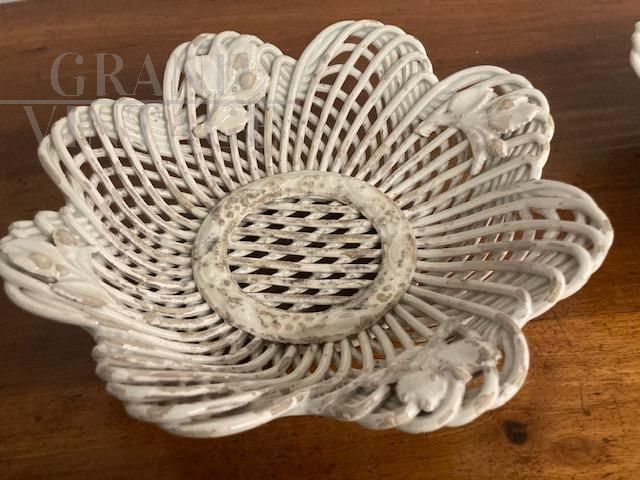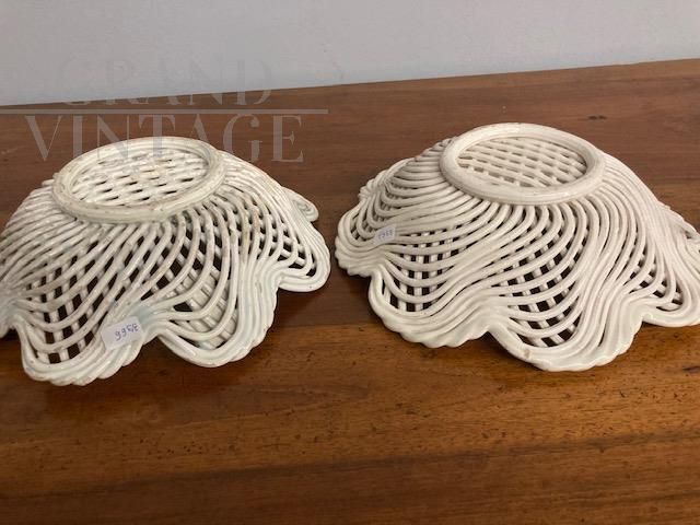 Coppia di piatti centrotavola antichi in maiolica traforata