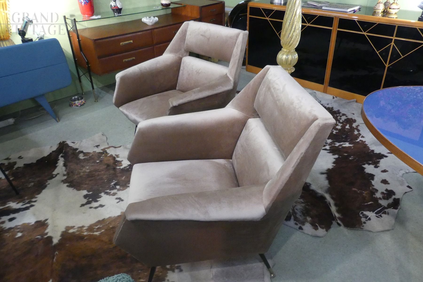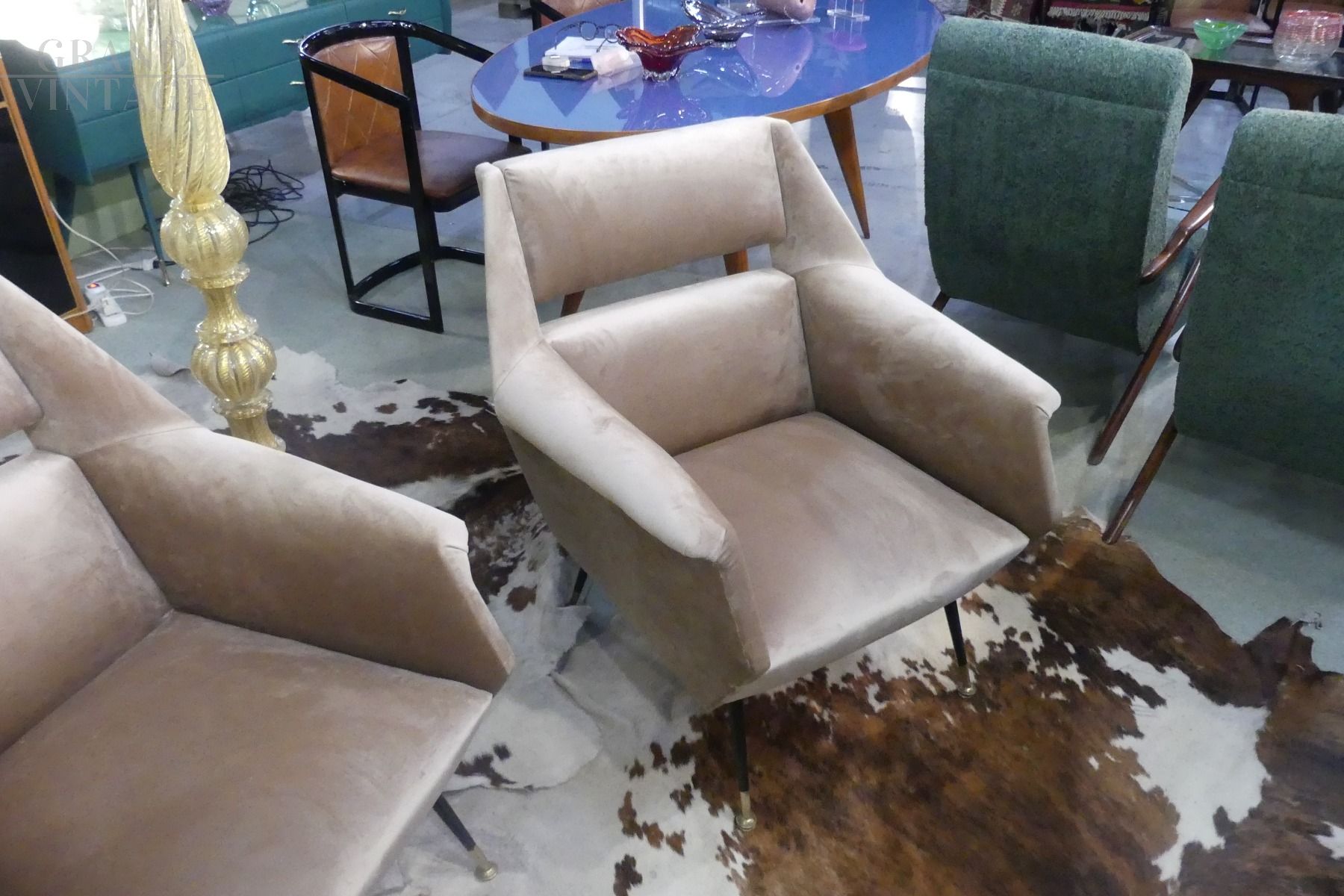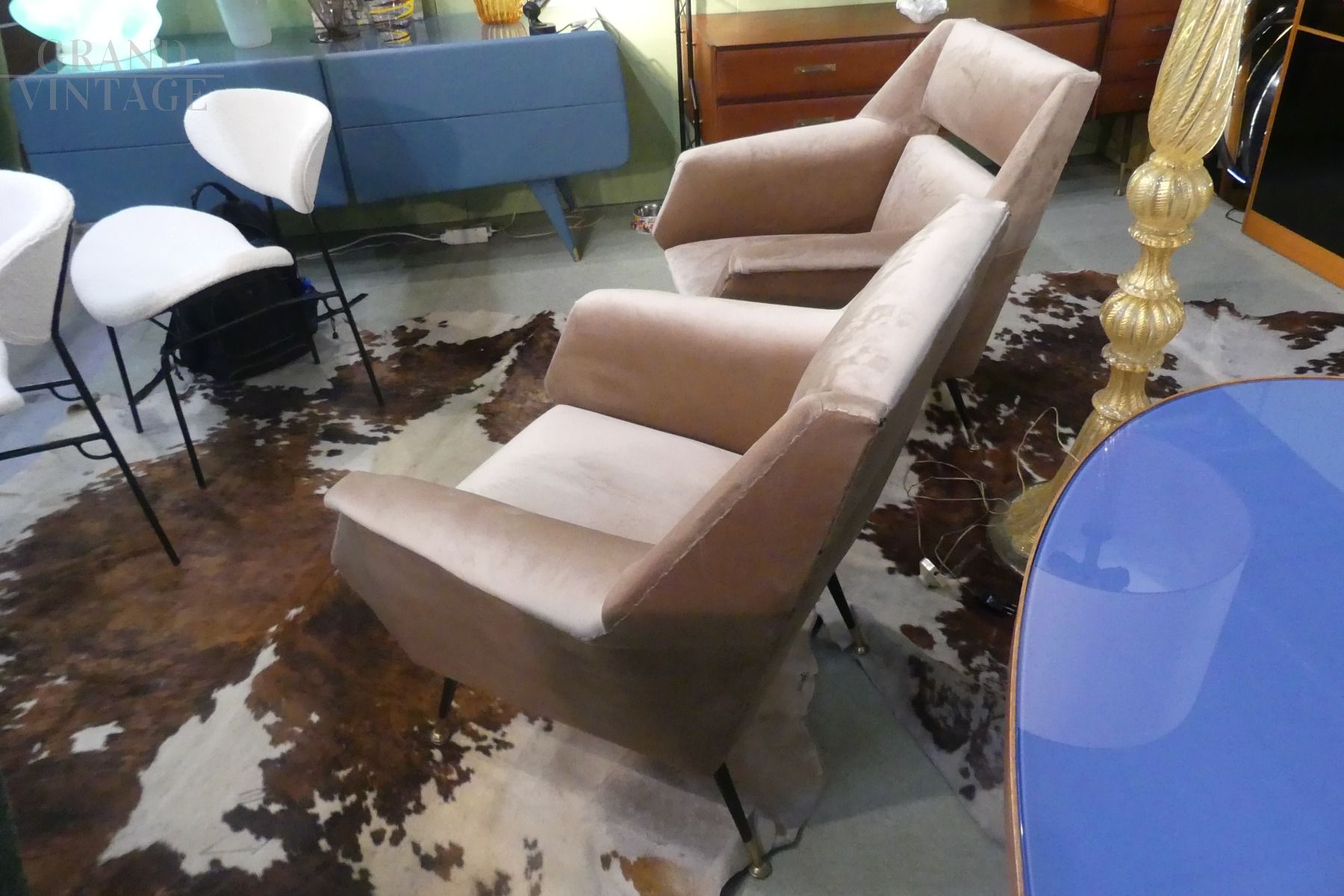 Coppia di poltroncine Gigi Radice in microfibra beige