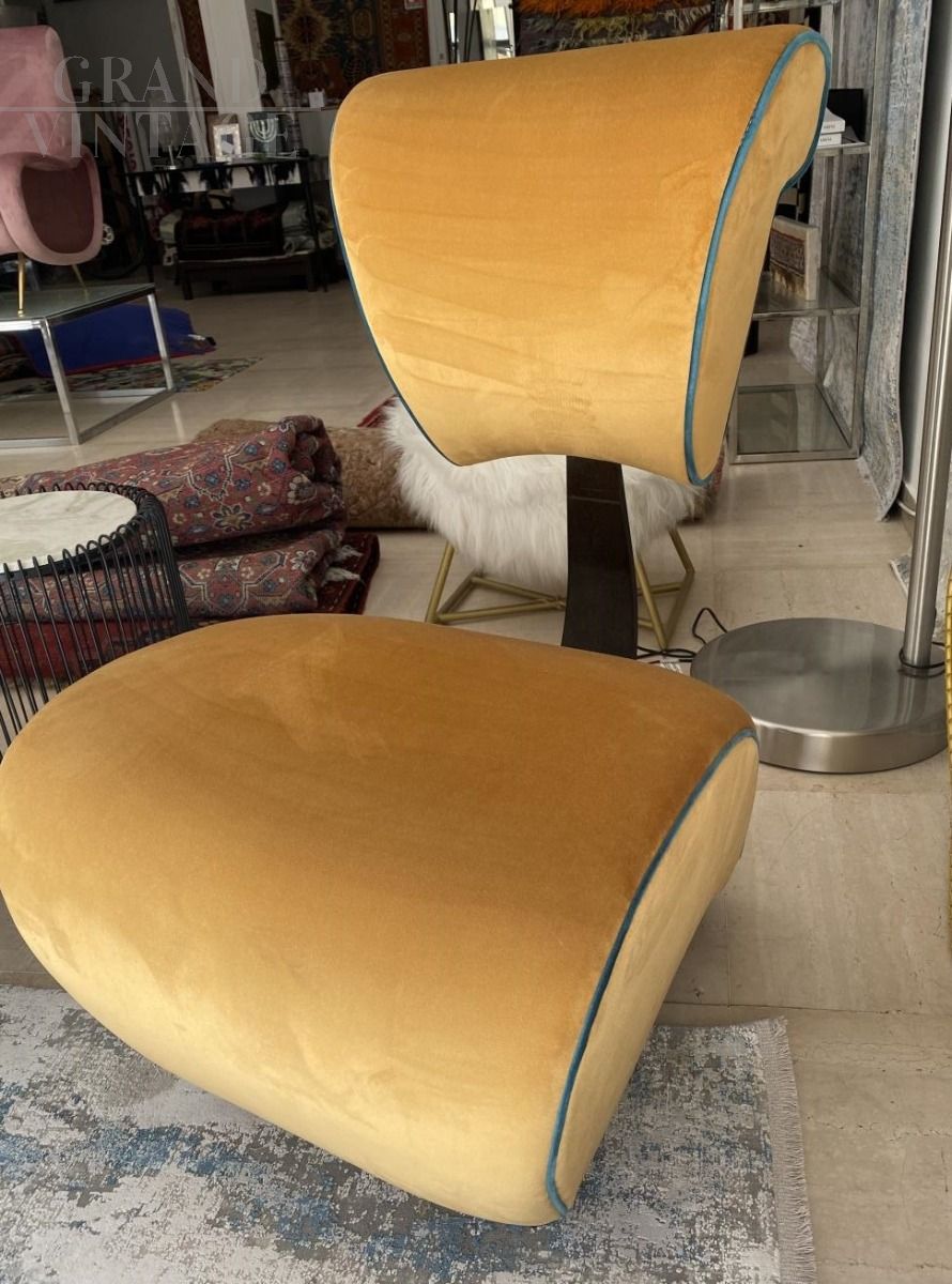 Coppia di poltroncine Jordan Mozer in velluto giallo anni '70