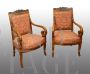 Coppia di poltrone antiche Carlo X Francese in radica di olmo e amaranto appartenente agli inizi del XIX secolo. Lo schienale imbottito è sovrastato da una cimasa mistilinea con intarsi a racemi e fiori. I due braccioli hanno un andamento curvilieo e terminano con ricciolo. I piedi a sciabola tipici del periodo Carlo X sono collegati da una traversa con al centro un intarsio a racemi. Possibilità di averne altre quattro uguali ma non restaurate.