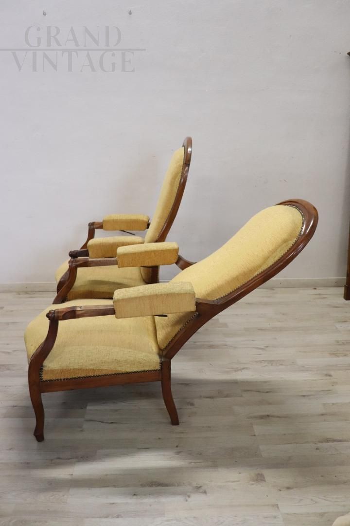 Coppia di poltrone antiche reclinabili, metà XIX secolo