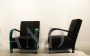 Coppia di poltrone Art Déco anni '40 in pergamena verde e velluto nero