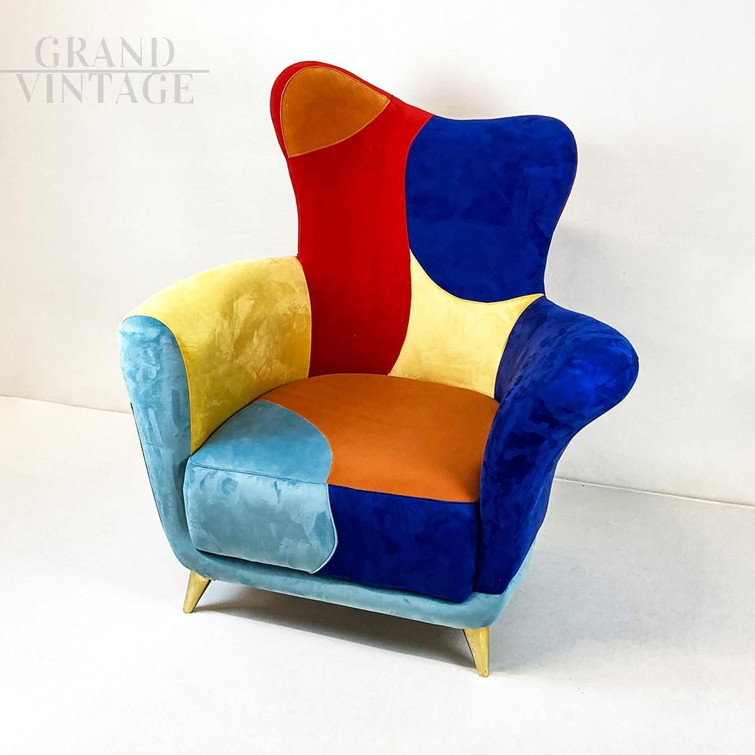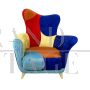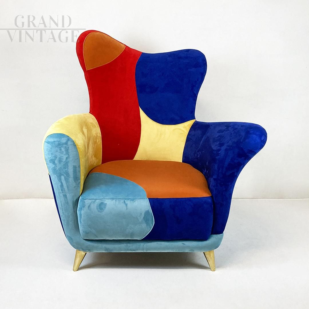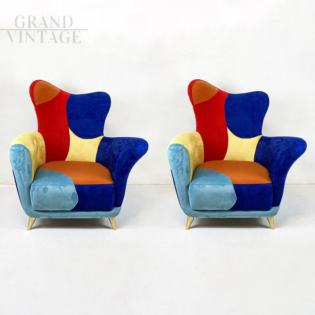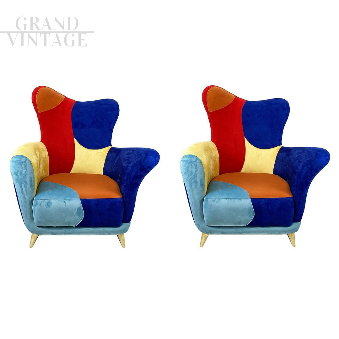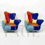 Coppia di poltrone design asimmetriche in velluto multicolore