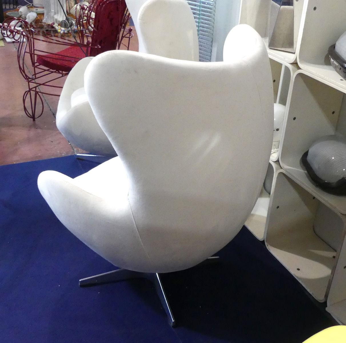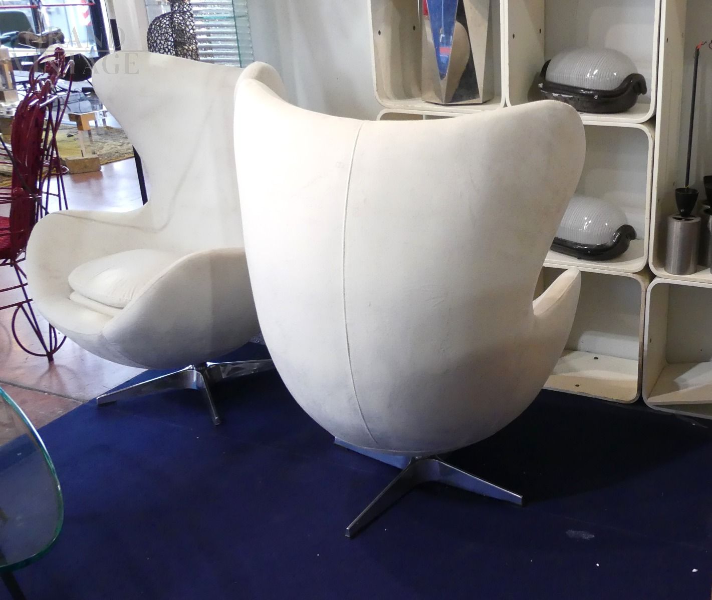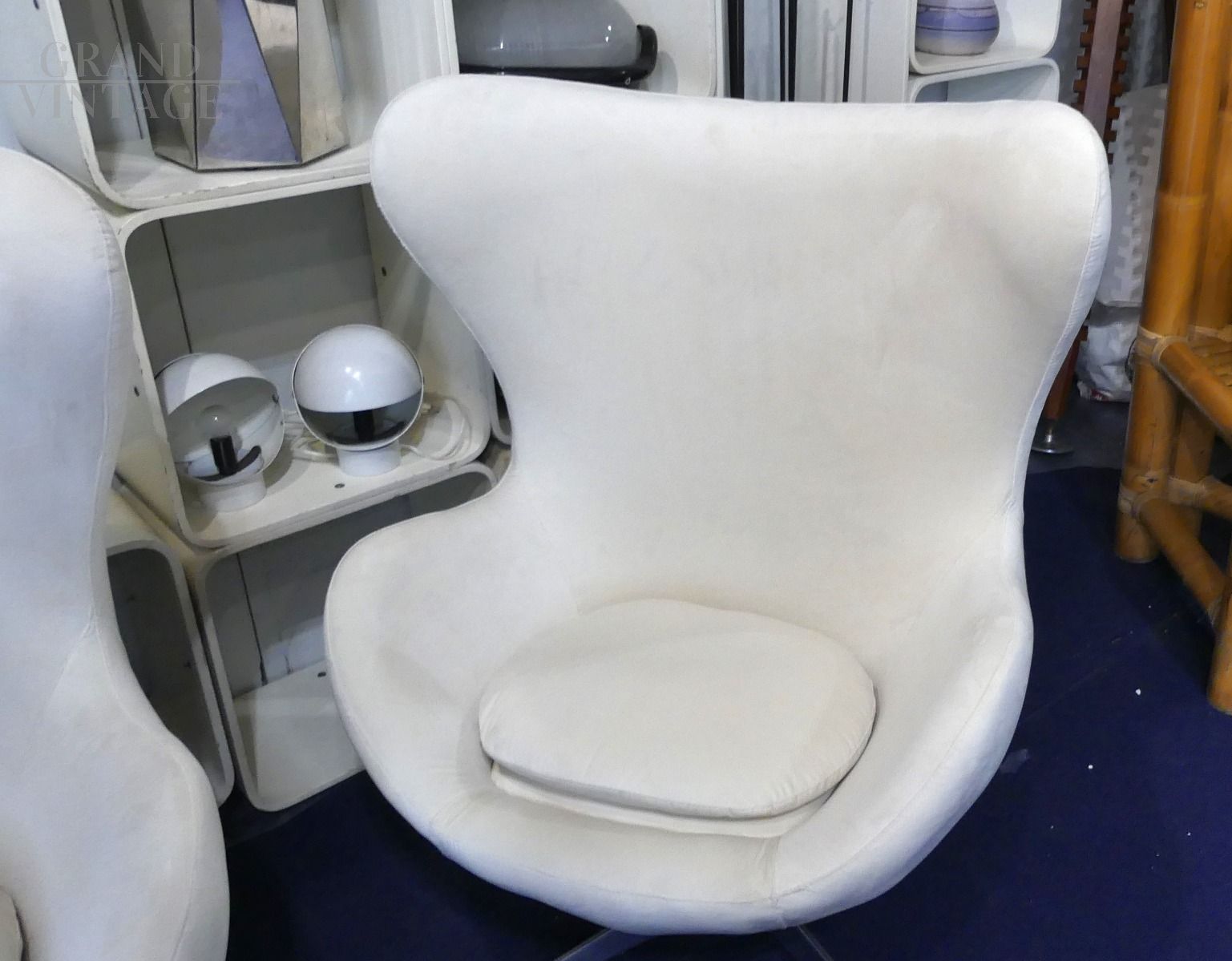 Coppia di poltrone design girevoli anni '70 in tessuto bianco, stile space age, con base in metallo cromato. In ottime condizioni.