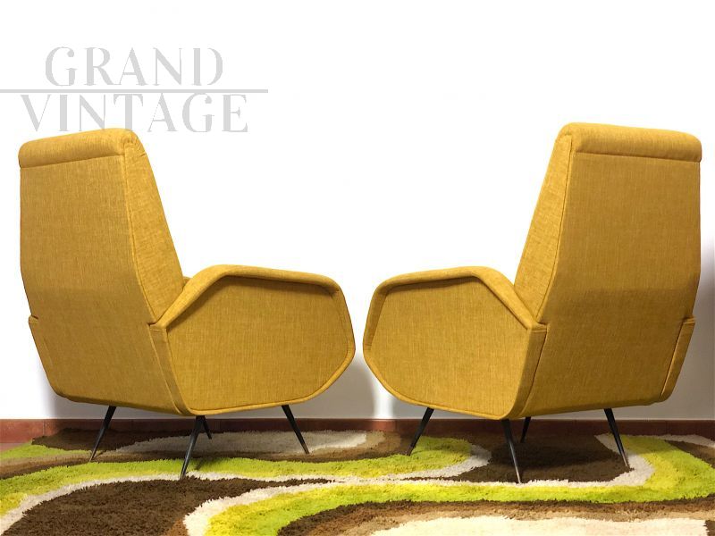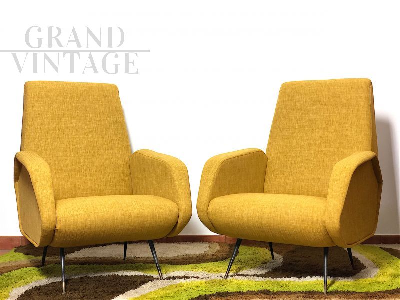 Coppia di poltrone design Marco Zanuso in tessuto giallo