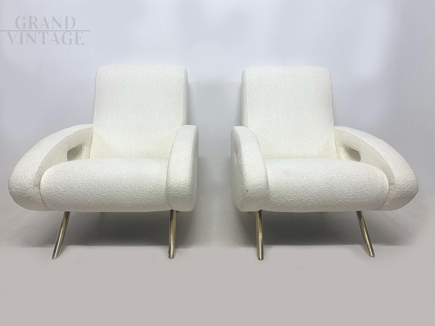 Coppia di poltrone design modernariato anni '70 in bouclé bianco
