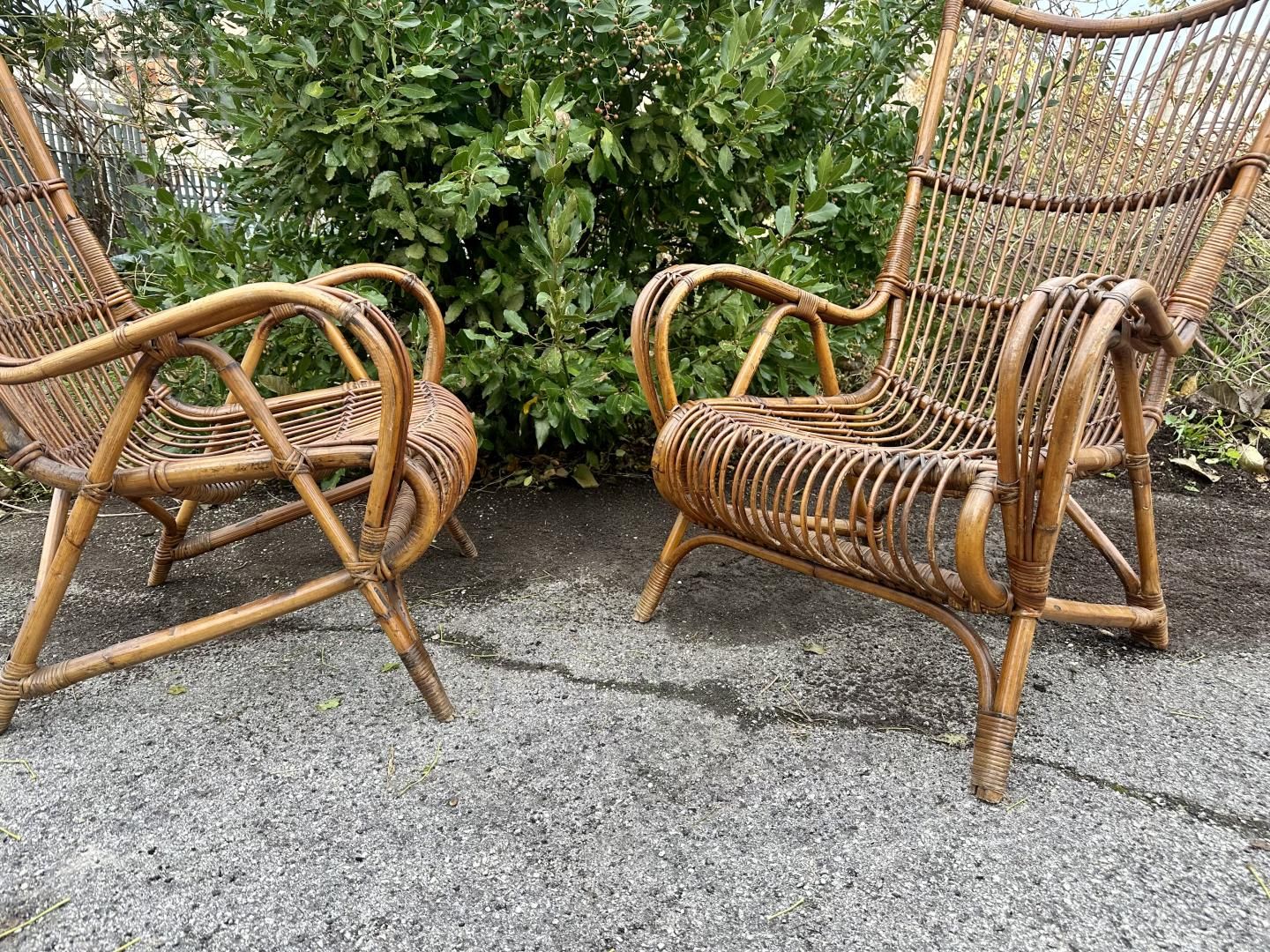 Raro modello di poltrone in bamboo e midollino prodotte in Italia negli anni ‘50.