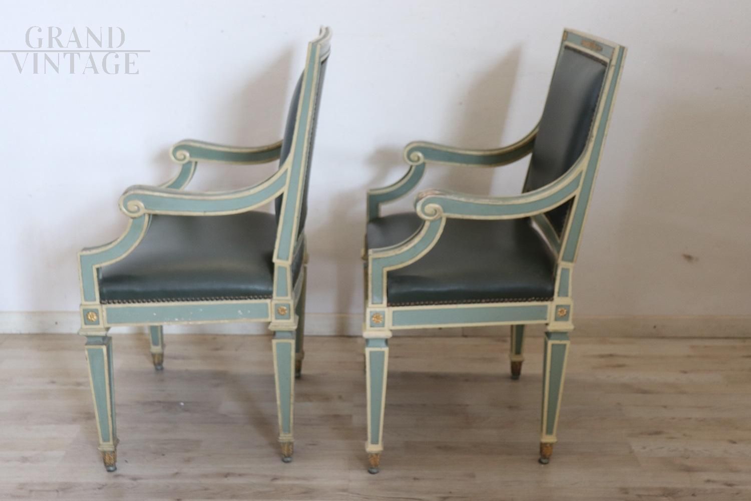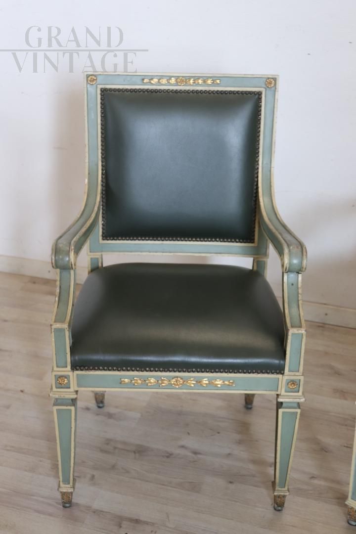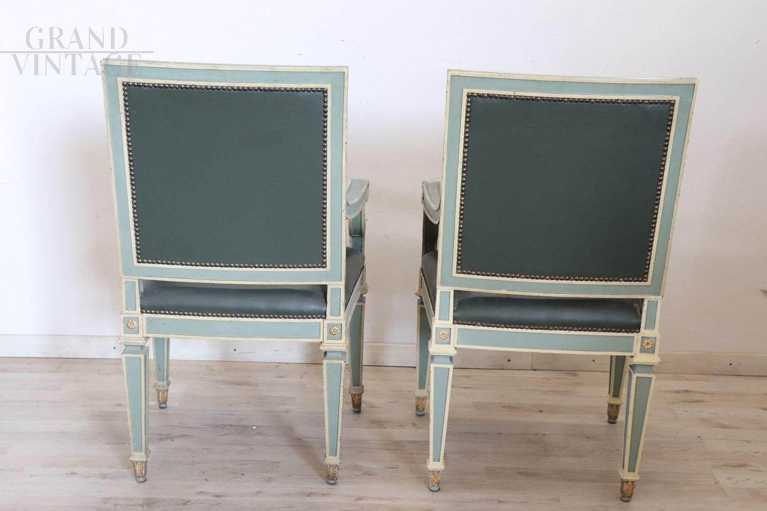 Coppia di poltrone in stile antico Luigi XVI laccate in skai verde