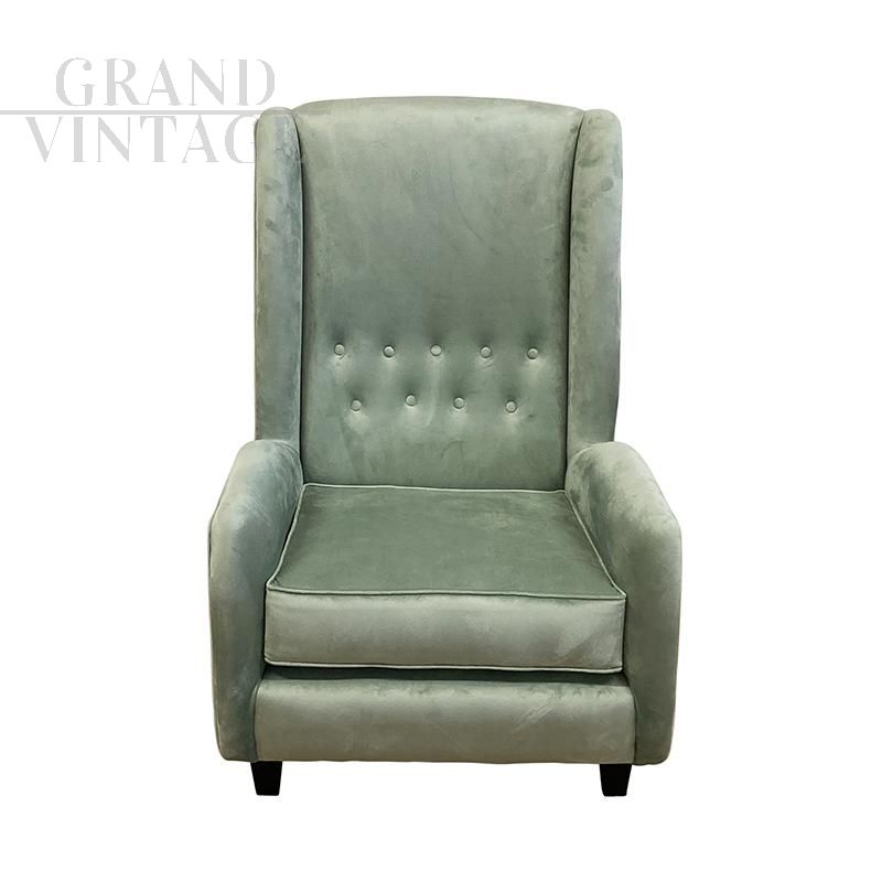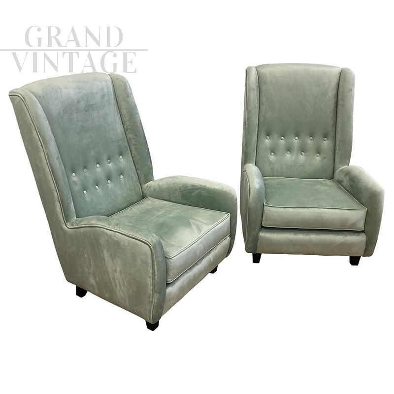Coppia di poltrone in stile vintage in velluto verde salvia