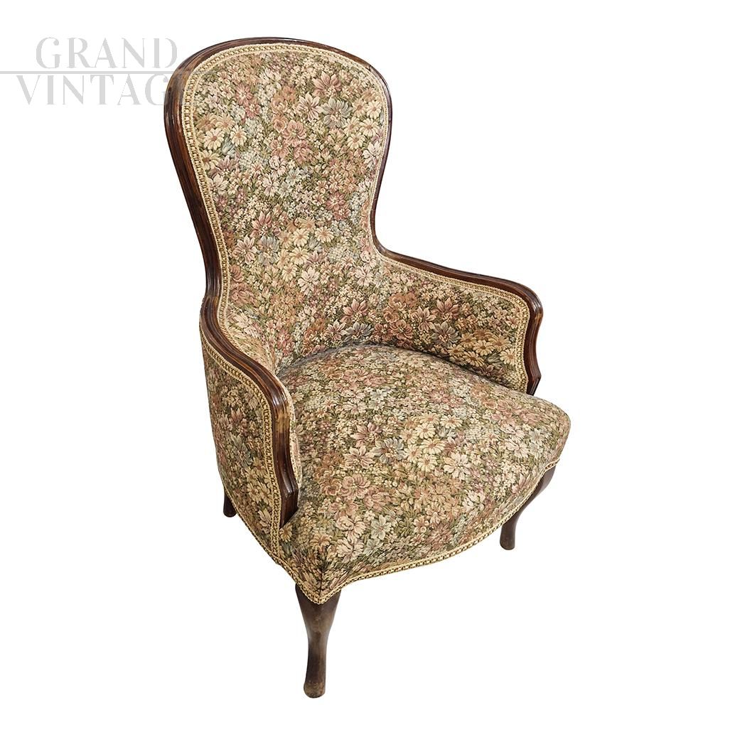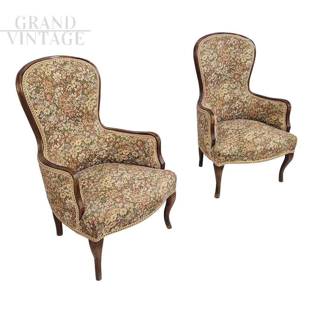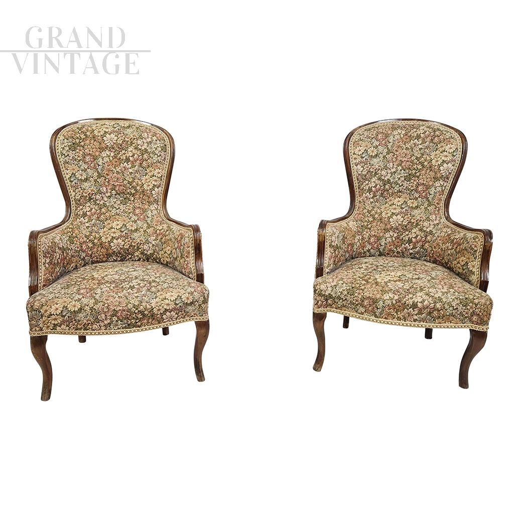 Coppia di poltrone vintage in legno rivestite con tessuto floreale