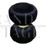 Elegante coppia di sgabelli pouf rotondi in velluto nero a forma di clessidra con fascia centrale in metallo dorato. Imbottitura confortevole.